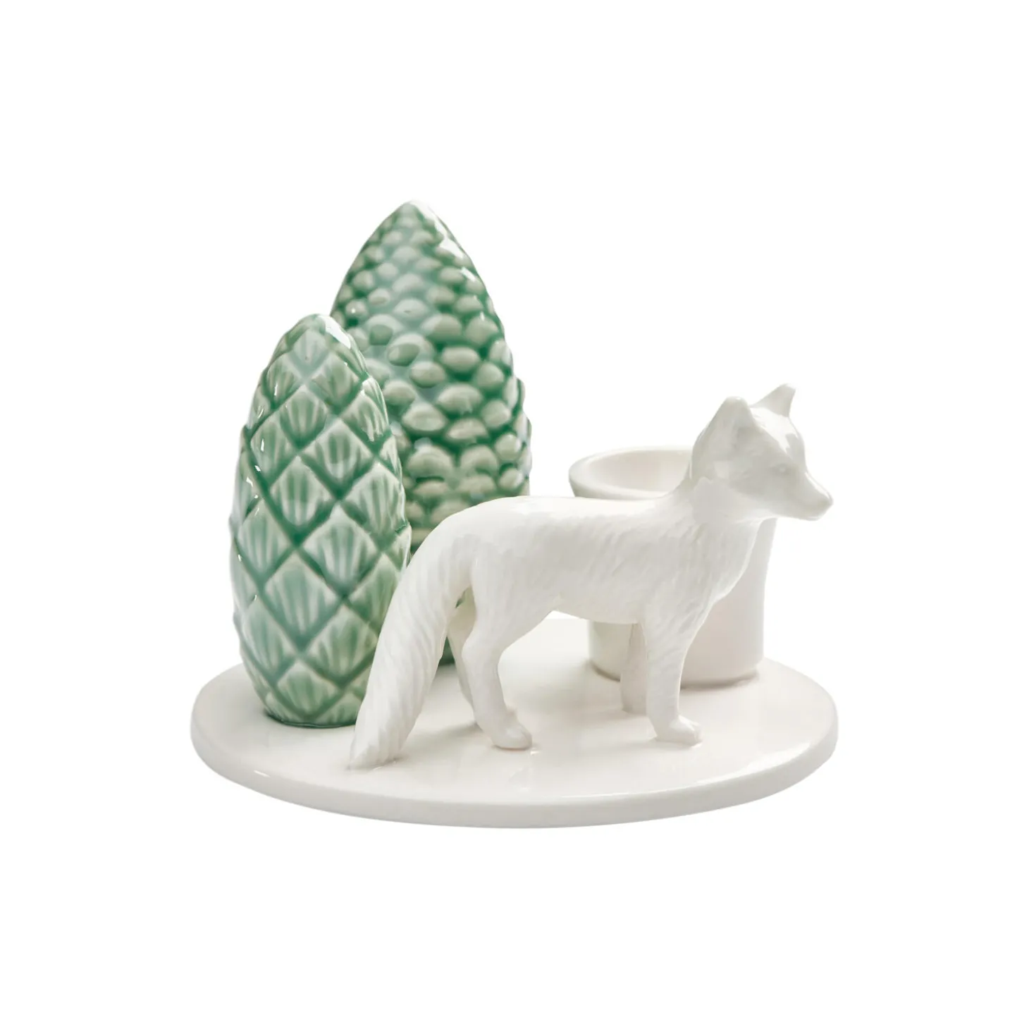 Lysestage med en ræv og to træer/kogler. Brug kronelys. Winter Stories er små magiske fortællinger om nordens særlige lys og landskab. De bringer varme og hygge til de mørke vinterdage.