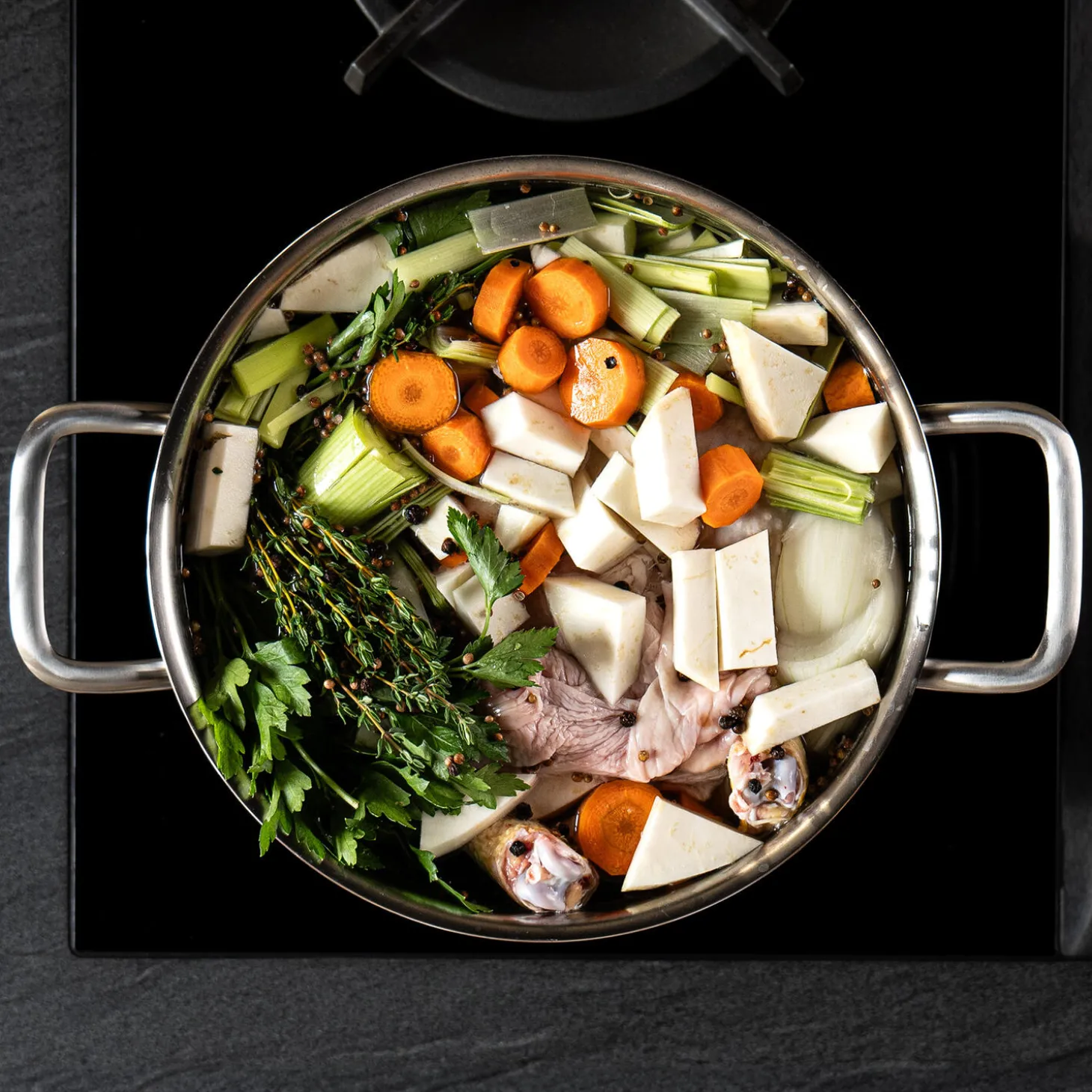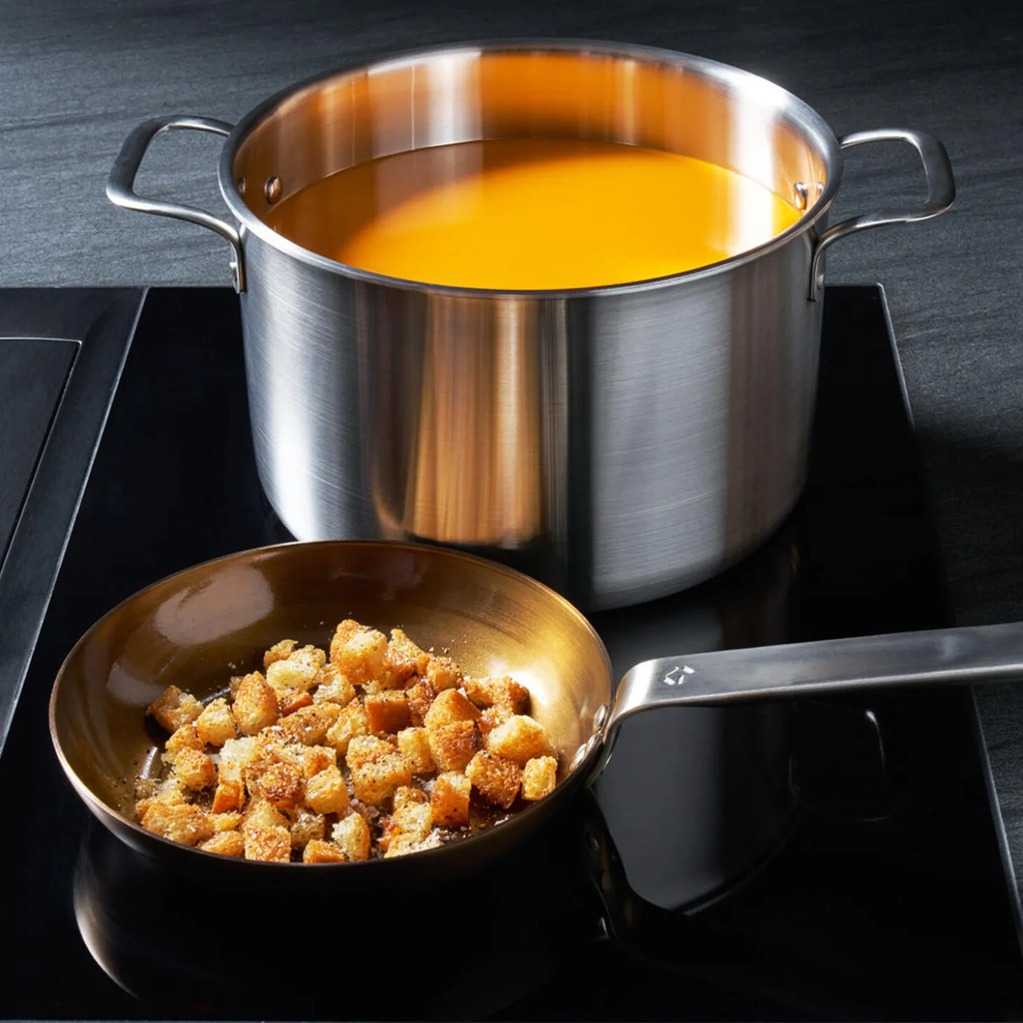 Med 5-ply får du en uopslidelig gryde, der holder hele livet med alle fordelene ved rustfrit stål: lav vedligeholdelse, egnet til alle typer madlavning, og så slipper du for PFAS og andre former for skadelige belægninger, der bliver slidt af med tiden og ender i maden. Ligesom resten af Gastrotools’ 5-ply-serie er gryden håndlavet i Italien på et familieværksted med over 130 års ekspertise, der omhyggeligt producerer hvert stykke køkkenværktøj. Opgrader dit køkken med en gryde i en størrelse, der er perfekt til at koge en hjemmelavet fond, kreere smagfulde supper eller tilberede store gryderetter til hele familien. Gryden har hældekant og giver en utrolig jævn varmefordeling på grund af konstruktionen i fem lag. Derfor undgår du hotspots i bunden af din gryde, der kan resultere i skilte saucer, brændt mad og ujævn tilberedning. Brug og pleje: Tåler opvaskemaskine og ovn op til 300 grader. Kompatibel med alle varmekilder, også induktion. Varm gryden op på middel varme.