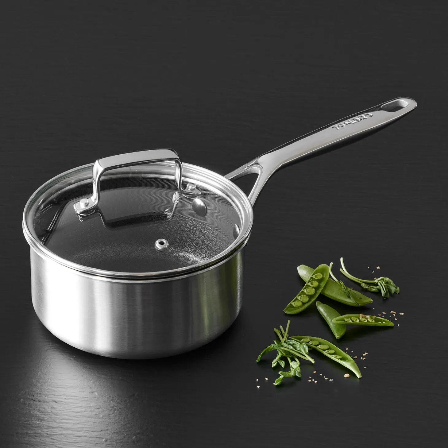 79Nord Hybrid er fremstillet af 3-ply rustfrit stål. Konstruktionen af to lag stål med et aluminiumlag imellem betyder, at varmen fordeles hurtigt og fastholdes jævnt og energieffektivt over både bund og sider, og samtidig er materialet let. Udvendigt er gryder og pander satinpolerede, indvendigt har de en innovativ hybridbelægning. Hybridbelægningen er en kombination af et forhøjet mønster i rustfrit stål og en 2-lags keramisk belægning, produceret uden PFAS. Det forhøjede mønster beskytter belægningen i bunden, og den keramiske topcoating giver non-stick-effekten. Hybridbelægningen er nem at rengøre, og alle typer redskaber kan bruges på belægningen, men vi anbefaler redskaber af træ, plast eller silikone. Inspirationen til mønsteret i hybridbelægningen kommer fra havet omkring øen Mors, fra ringe i vandet, der breder sig hurtigt og ustoppeligt.Håndtag og greb er af støbt stål. Vær opmærksom på, at de kan blive meget varme.79Nord Hybrid-produkterne kan bruges på alle varmekilder, også induktion. De kan desuden anvendes i ovn, med låg op til 200 °C, uden låg helt op til 260 °C. Produkterne er velegnede til vask i opvaskemaskine, og vi anbefaler, at de også vaskes før første brug.