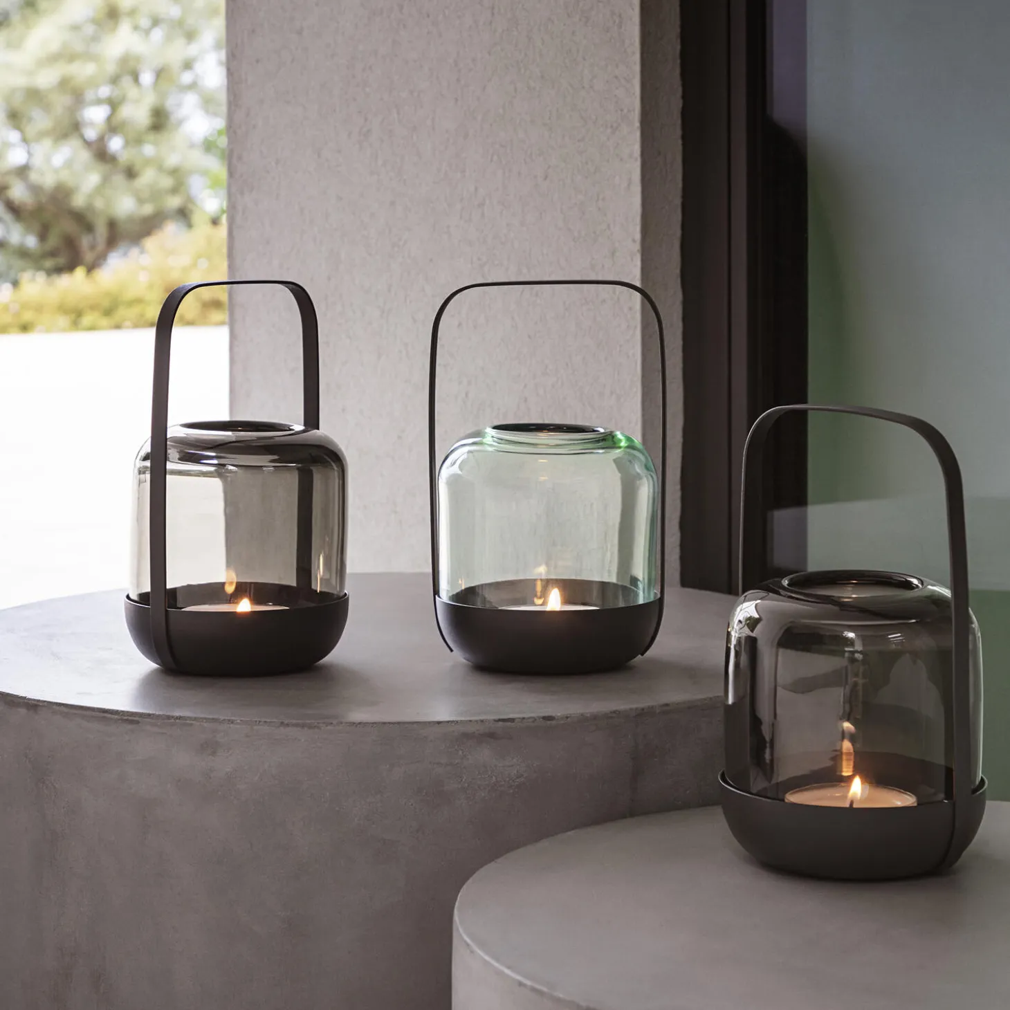 Lad hyggen sprede sig både inde og ude med den elegante og dekorative Acorn lanterne. Med sit praktiske greb i pulverlakeret stål er lanternen lige til at tage med sig, f.eks. ud på terrassen. Glassets sarte Mint-nuance er inspireret af den rå natur omkring os. Lanternen tændes nemt ved blot at løfte glasset og passer til fyrfadslys i standardstørrelse. Glasset tåler maskinopvask. Pulverlakeret stål: rengøres nemt med en opvredet klud.