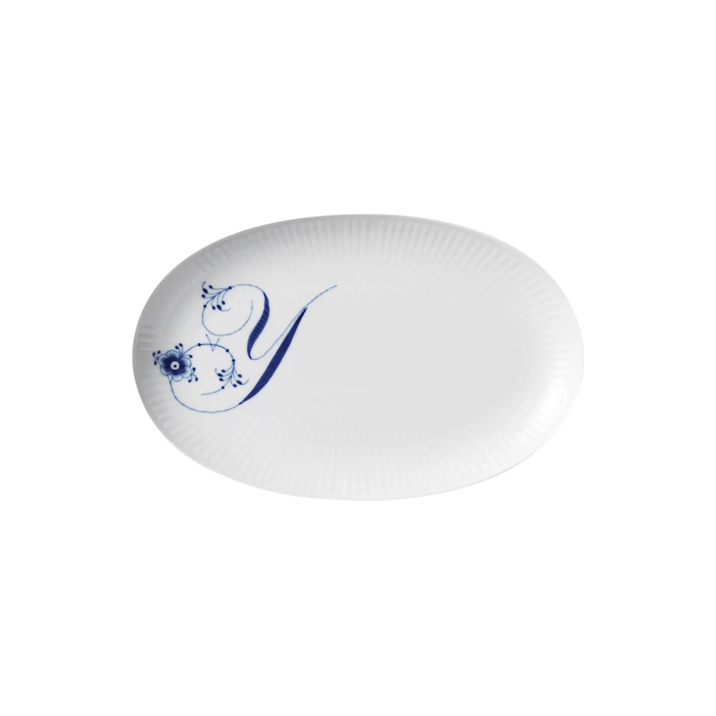 Alfabet tallerken Y i porcelæn fra Royal Copenhagen. Det smukke ’Y’ er håndmalet på denne ovale tallerken på 23,5 cm, som er et charmerende supplement til Alfabetkrusene. Brug den lille tallerken i en personlig opdækning og skab dit eget udtryk ved at kombinere den med andre steldele fra Royal Copenhagen.
