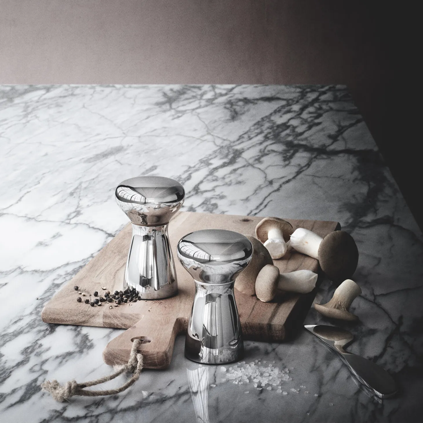 Ranke som to små tinsoldater kan disse to salt- og peberkværne ikke undgå at spice dit spise- eller køkkenbord op. Detaljerne er skåret ned til et absolut minimum for at sikre, at den skulpturelle form – som selvfølgelig passer perfekt i din håndflade – står tydeligt frem. Funktionaliteten er i højsædet med den patenterede all-grind teknologi, der gør det let at sikre den perfekte kornstørrelse.