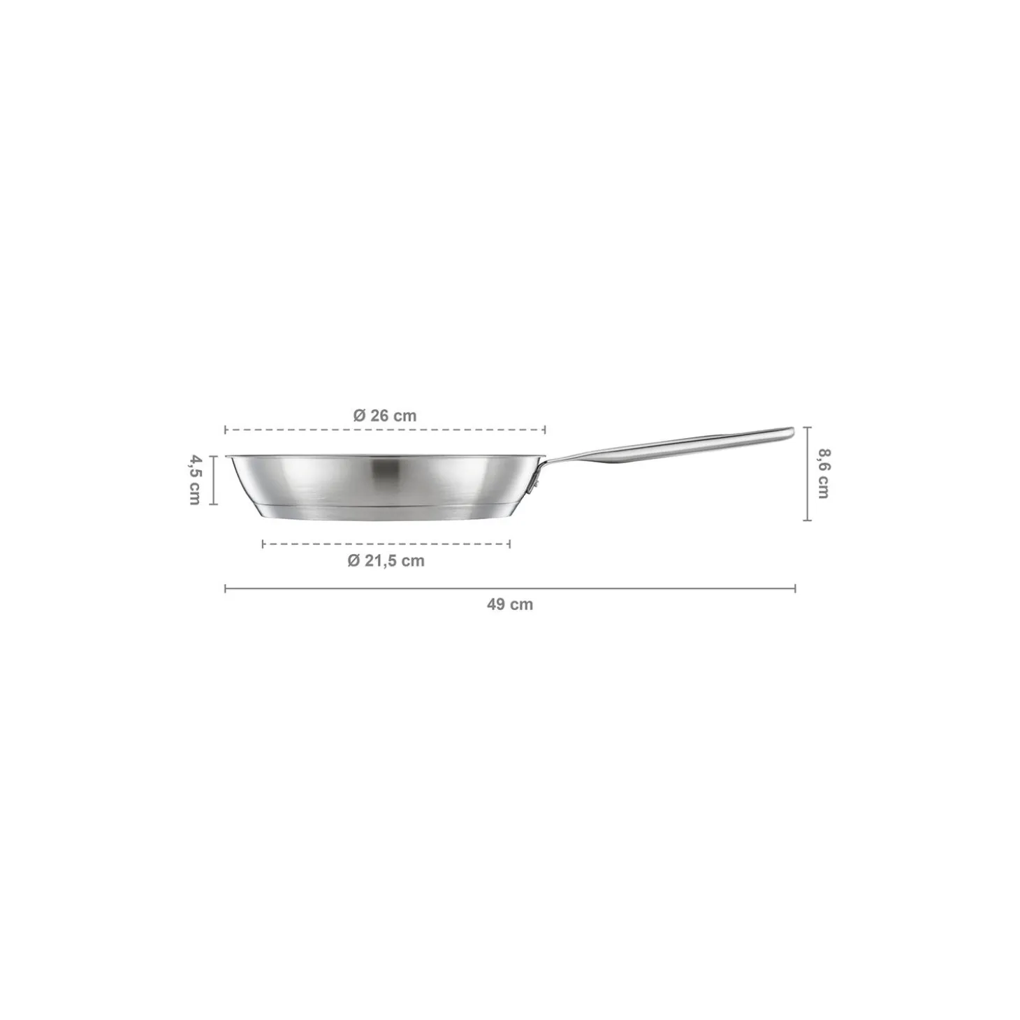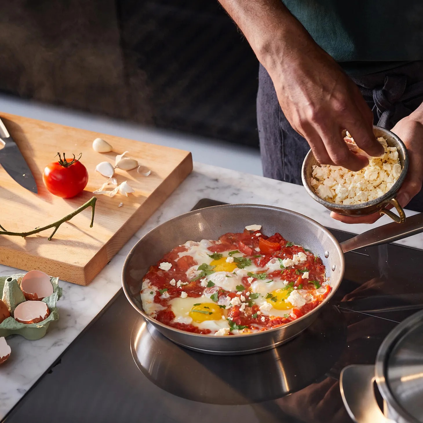Fiskars All Steel stegepande 26 cm giver madlavningen et løft med genanvendt rustfrit stål i høj kvalitet, som minimerer affaldsmængden. Panden er fremstillet af 90 % genanvendt stål med 92 % lavere CO2 udledning end gennemsnittet i branchen og er utrolig holdbar. Takket være dens non-stick Ceratec™ belægning, der giver en fin stegeskorpe og kan bruges ved høje temperaturer, er du sikker på at opnå perfekte stegeresultater. Den tykke 3-lags bund er optimeret til effektiv og jævn varmefordeling på alle typer kogezoner. Pandens tidløse, simple udtryk passer godt ind i det moderne, bæredygtige køkken og gør hvert måltid til en god oplevelse. Fremstillet i Finland med bæredygtige processer og produktionsmetoder.