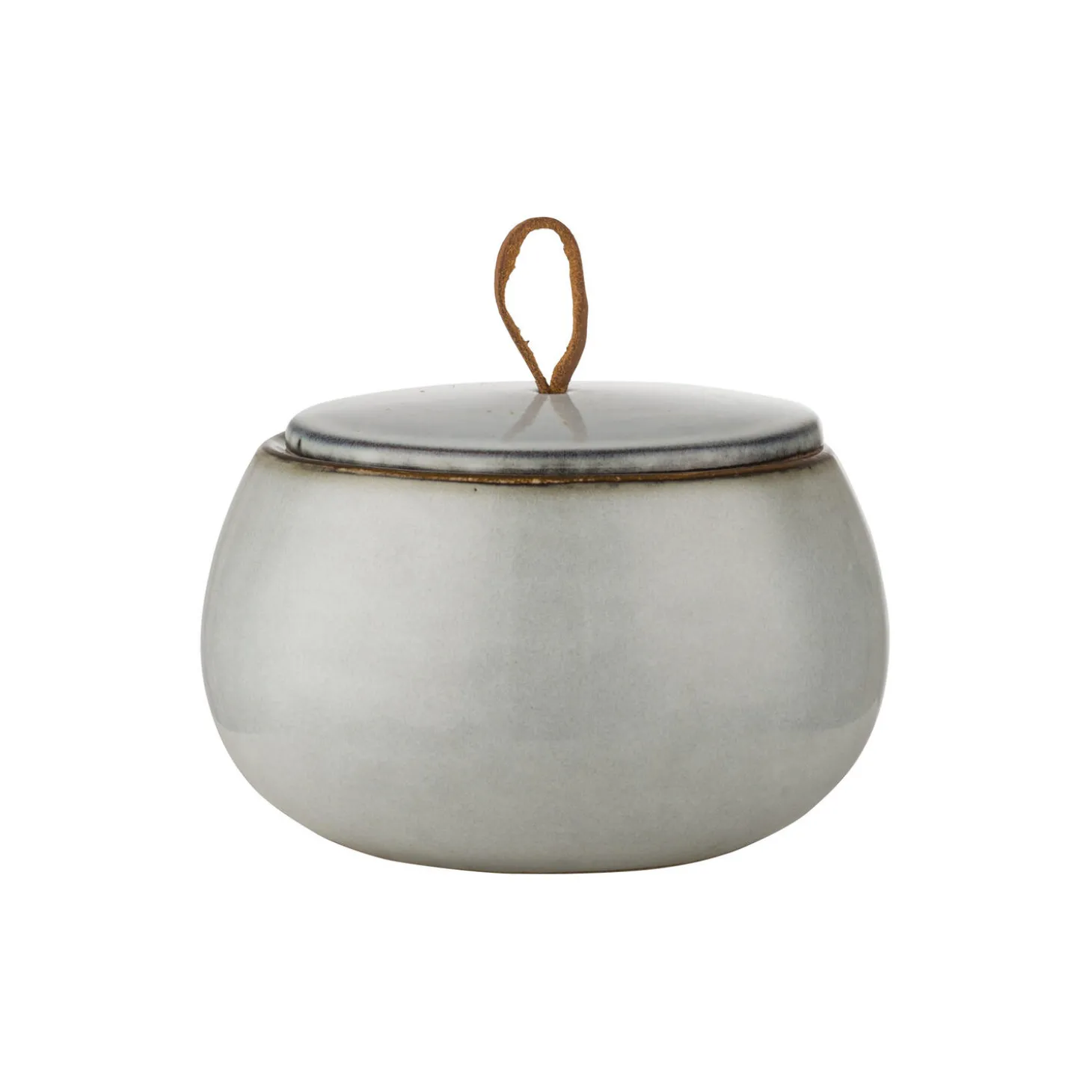 Fin krukke i grå stentøj. Krukken er en del af Amera serien. Charmen og kendetegnet for produkterne i Amera serien er, at produkterne er belagt med dobbelt reaktiv glasur. Dette betyder af der kan forekomme variationer i farve og udseende fra produkt til produkt. OBS: Krukken tåler mikroovn og opvaskemaskine.