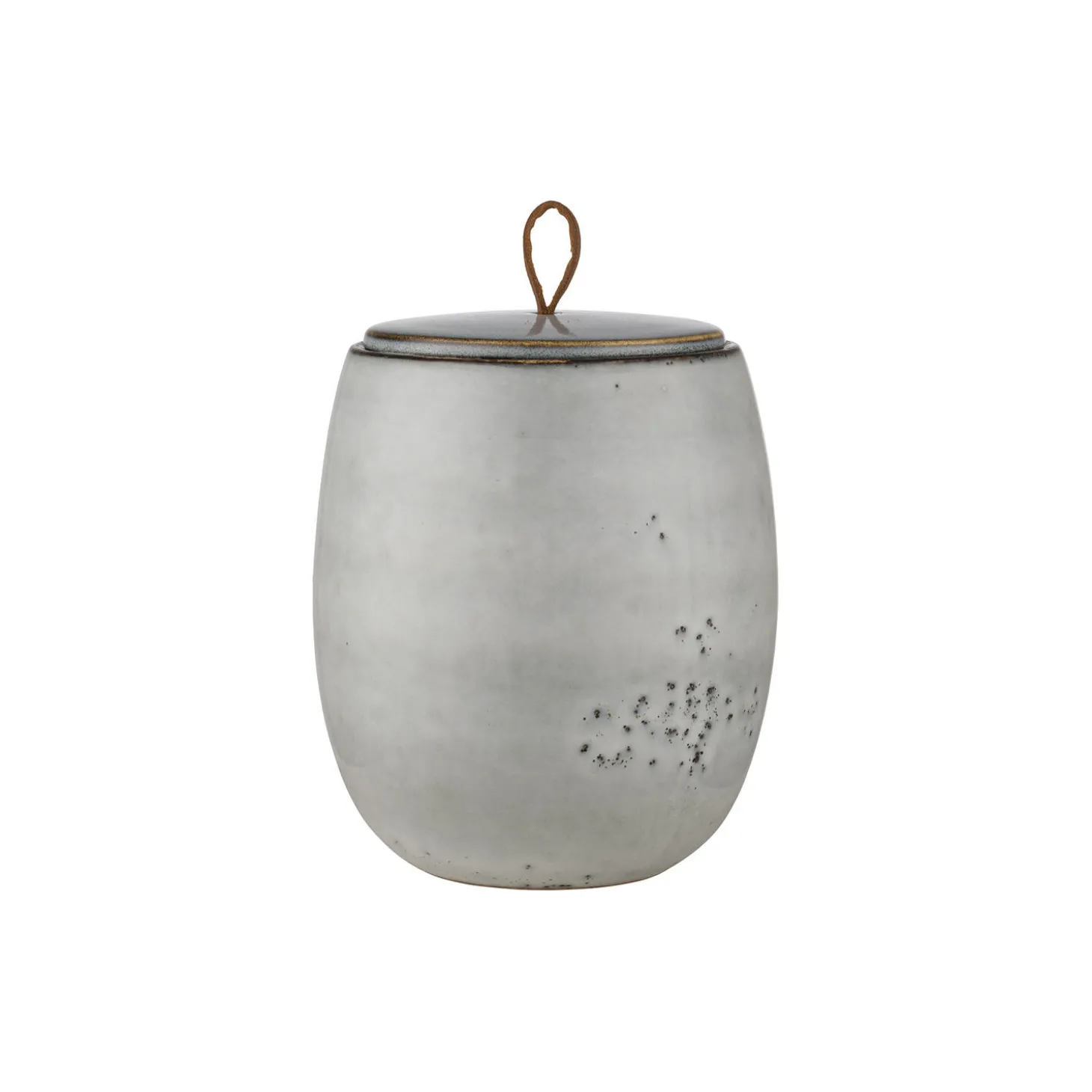 Fin krukke i grå stentøj. Krukken er en del af Amera serien. Charmen og kendetegnet for produkterne i Amera serien er, at produkterne er belagt med dobbelt reaktiv glasur. Dette betyder af der kan forekomme variationer i farve og udseende fra produkt til produkt. OBS: Krukken tåler mikroovn og opvaskemaskine.