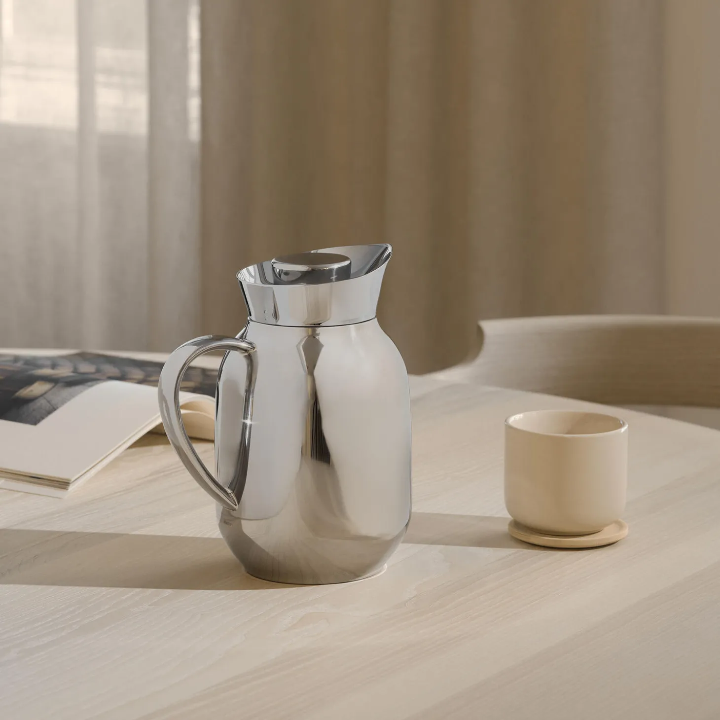 Steltons Amphora-kande i rustfritstål er skabt til at imponere med sin kombination af elegance og funktionalitet. Kanden er designet af Sebastian Holmbäck, inspireret af oldgræske lerkrukker, der blev brugt til opbevaring af olie og vin. Holmbäcks design, der trækker på amforaens karakteristiske former, skaber en bro mellem fortid og fremtid, og passer formmæssigt sammen med de øvrige kander. Kanden er ikke blot visuelt tiltalende, men også praktisk og holdbar med den rustfrie stålkonstruktion. Med sit isolerende stålindsats sikrer Holmbäcks termokande, at din kaffe og te holder sig varm i timer, samtidig med at den tilfører en tidløs elegance. Kanden tåler vask i industrielle opvaskemaskiner, mens låget skal vaskes i hånden.