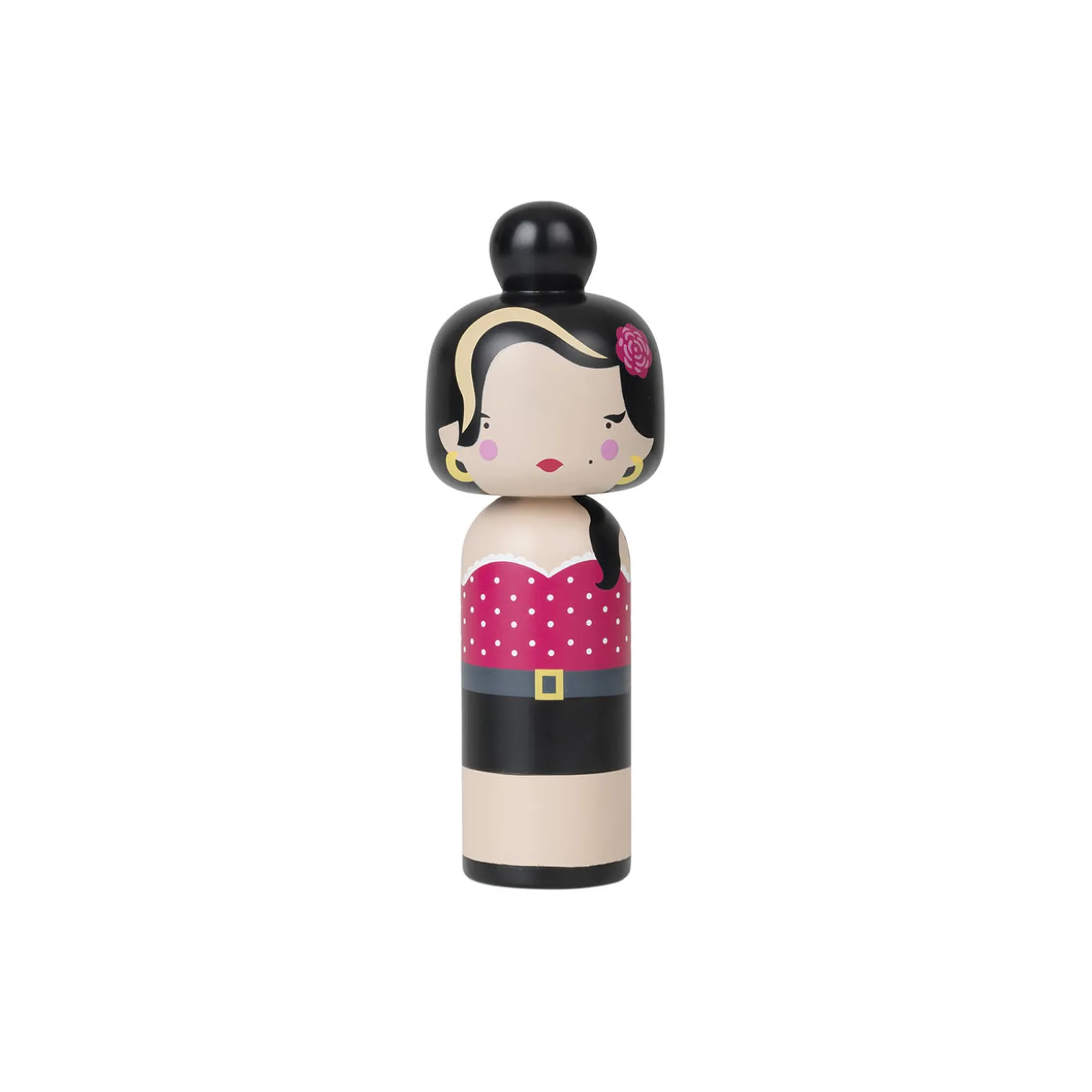 Amy Kokeshi træfigur i håndmalet Schima Superba træ fra Lucie Kaas. Farve: multifarvet. Mål: H: 14,5 cm. Design: Becky Kemp.