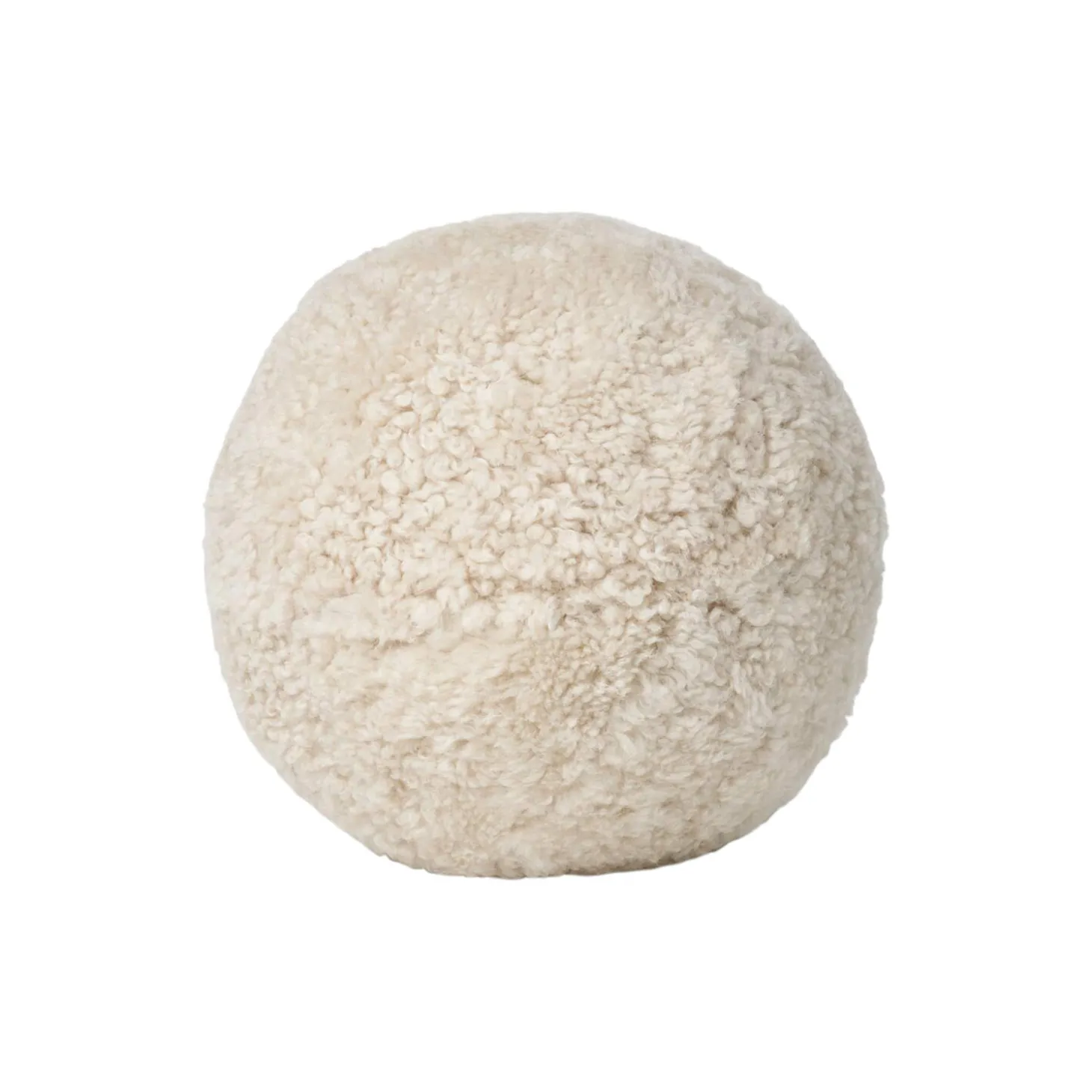 Angelite Round pude i Newzealandsk lammeskind fra NATURES Collection. Farve: pearl. Mål: Ø 30 cm.