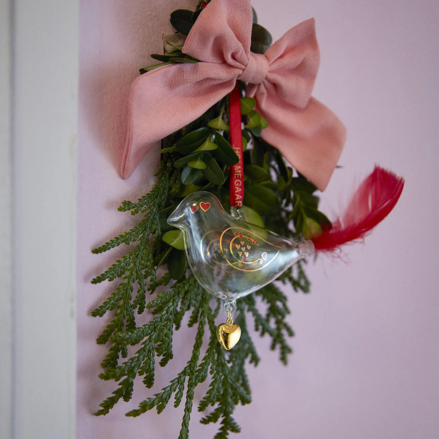 Holmegaard blev grundlagt i 1825. Og med årets glaspynt 2025 fejres 200-årsjubilæet for Holmegaard med udgangspunkt i svanen. Den stolte og elegante fugl er et symbol for Holmegaard, og sammen med små hjerter og en gren med røde vinterbær vil årets motiv smukt og dekorativt udstråle transformation, skønhed og skabe en atmosfære af poetisk glæde. Årets lille julefugl 2025 fra Ann-Sofi Romme måler 7 cm i højden og er 14 cm lang, når halefjeren tælles med – og kommer som altid i mundblæst glas. Farverne er holdt klassiske i rød og guld og med en afsluttende metallisk finish, og de små, røde hjerter skaber en hyggelig stemning til hjerternes fest. Den grafiske dekoration er helt i tråd med både juletraditioner og tidens farvetrend med matchende røde silkesnore, der indbyder til ophæng på træet, i vinduet eller på grangrene rundtomkring i hjemmet sammen med resten af den nostalgiske serie. Med sin klassiske juleserie for Holmegaard har Ann-Sofi Romme skabt en enkel og original julefortælling, der for mange er forbundet med genkendelsens glæde og refleksioner over julens romantiske øjeblikke. Hvert år har hun fortalt videre på det juleeventyr, som hun begyndte med sin klokke for Holmegaard tilbage i 1993.