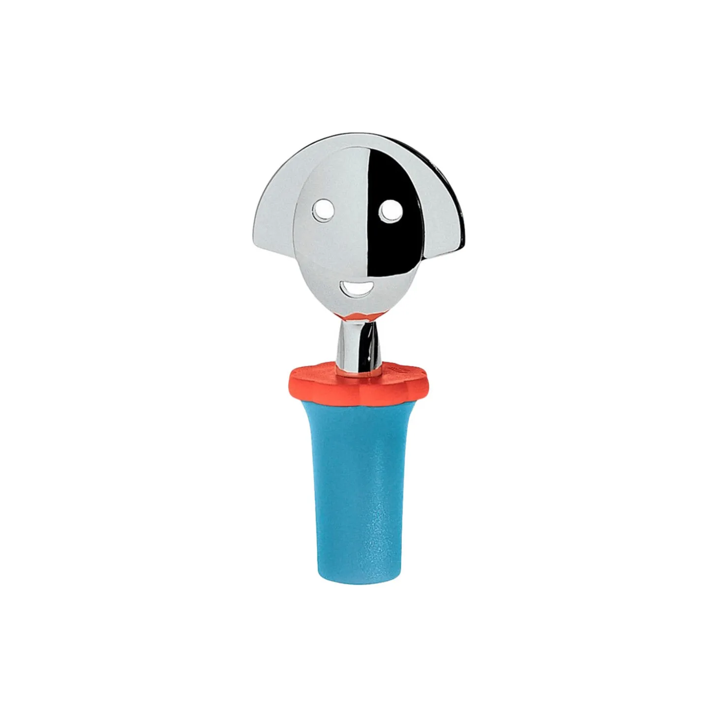 Anna vinprop i termoplast og krombelagt zamak fra Alessi. Farve: blå. H: 10 x Ø 4 cm. Design: Alessandro Mendini.