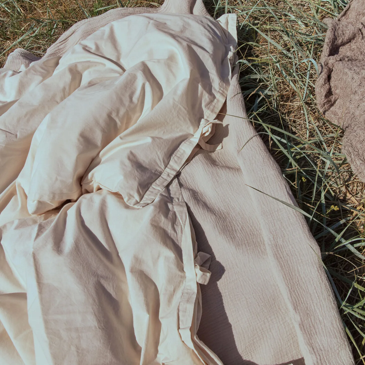 Blødt sengelinned i 100% økologisk bomuldspercale med garnfarvede striber. Den tætte percale-vævning er ikke kun slidstærk og smuk at se på, men også let og åndbar. Sengetøjet er pre-washed, hvilket giver et naturligt krøllet look, og gør sengetøjet utrolig blødt mod huden og det bliver kun blødere, jo mere det bruges. Pudebetrækket er med kuvertlukning, mens dynebetrækket lukkes med fine bindebånd.