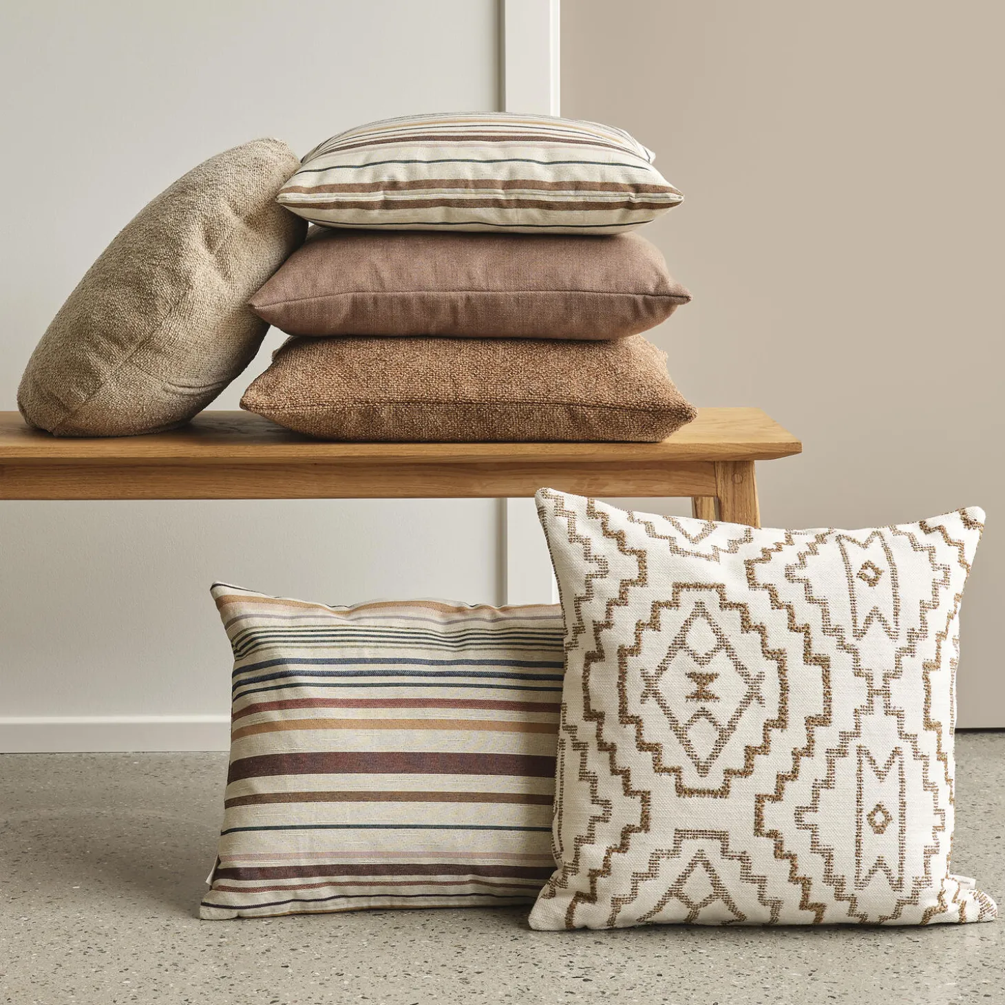 Med et let mønster efter græsk inspiration leder den fine ATHEN pude tankerne mod varmere himmelstrøg og uendelige dage med sol og vand. Det jacquard-vævede mønster i bouclé og kanvas giver et klassisk, men moderne look og skaber en indbydende stemning i din indretning.