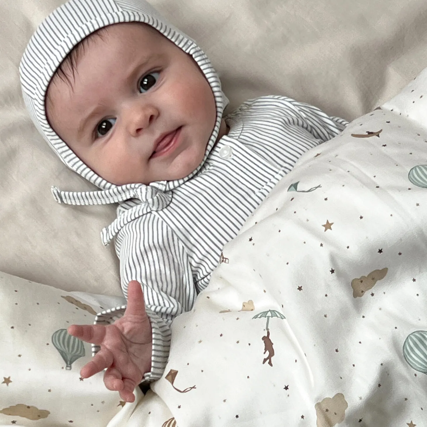 Blødt økologisk, GOTS-certificeret baby sengetøj i Satinvævet bomuld. Babysengetøjet kommer i et væld af fine Cam Cam mønstre, og sættet leveres i et matchende stofnet. Sættet inkluderer babydynebetræk og hovedpudebetræk. Begge dele har YKK lynlås lukning. Sengetøj i hvide og brune nuancer.