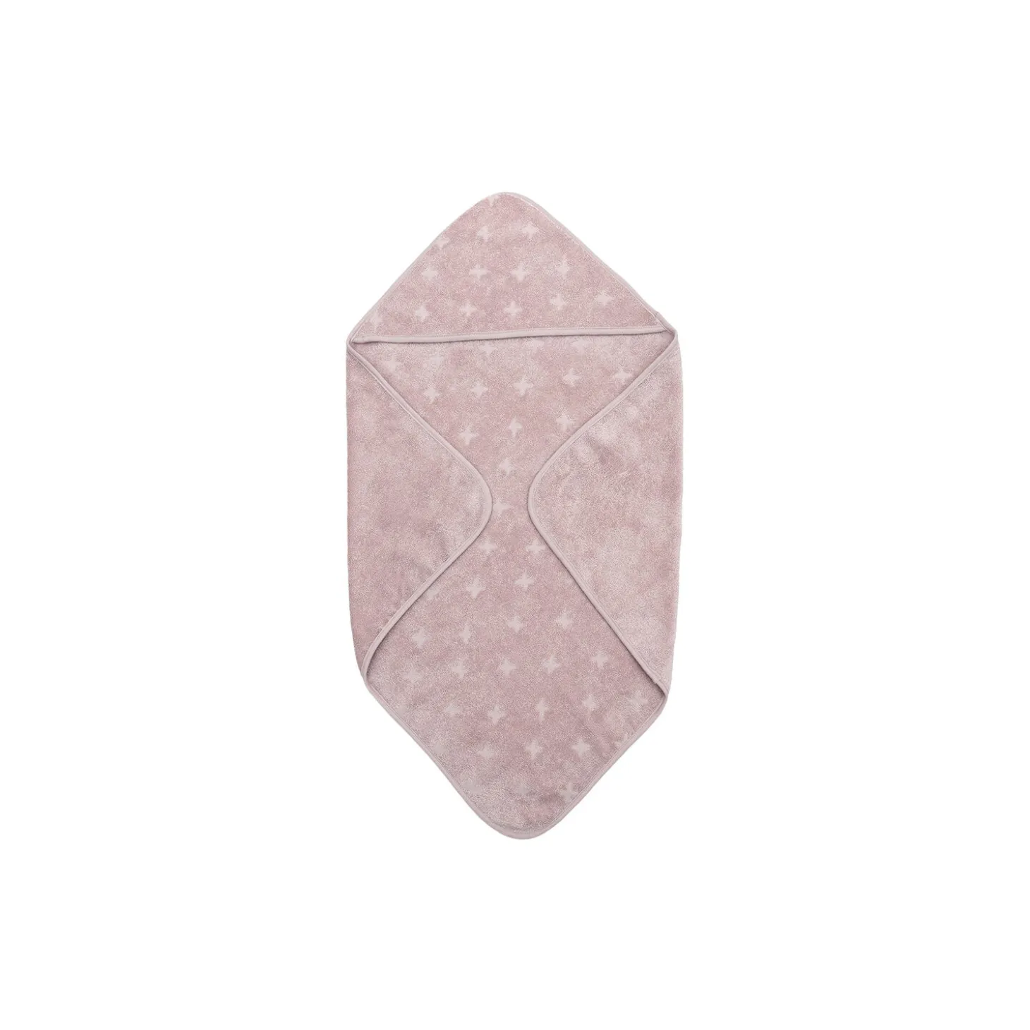 Babyhåndklæde med hætte og krydsmønster. Dejlig blødt og perfekt til de små da man kan pakke dem godt ind fra top til tå. 70 x 70 cm. Produktet er GOTS organic- certificeret, hvilket betyder at bomulden er certificeret økologisk, og at der i alle andre processer som farvning, strikning og syning er taget de strengeste hensyn til miljøet. GOTS er internationalt anerkendt som den førende standard for forarbejdning af tekstiler af økologisk bomuld. Derudover tages der også hensyn til arbejdsforholdene, hos dem der producerer tøjet. Økologisk bomuld 100%