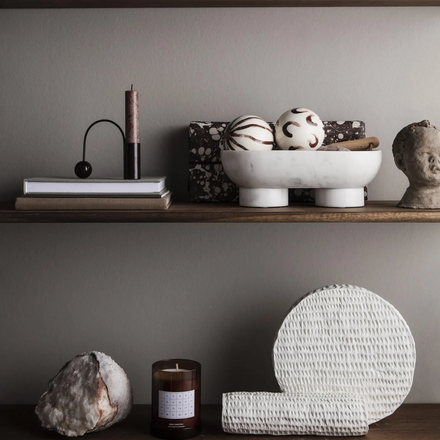 Balance Candle Holder er et studie i balancekunst, når de forskellige elementer i designet danner modvægt til hinanden og skaber et øjeblik af rolig ligevægt. De geometriske former er både skulpturelle og funktionelle, idet buen kan bruges som et håndtag til at bære lysestagen.