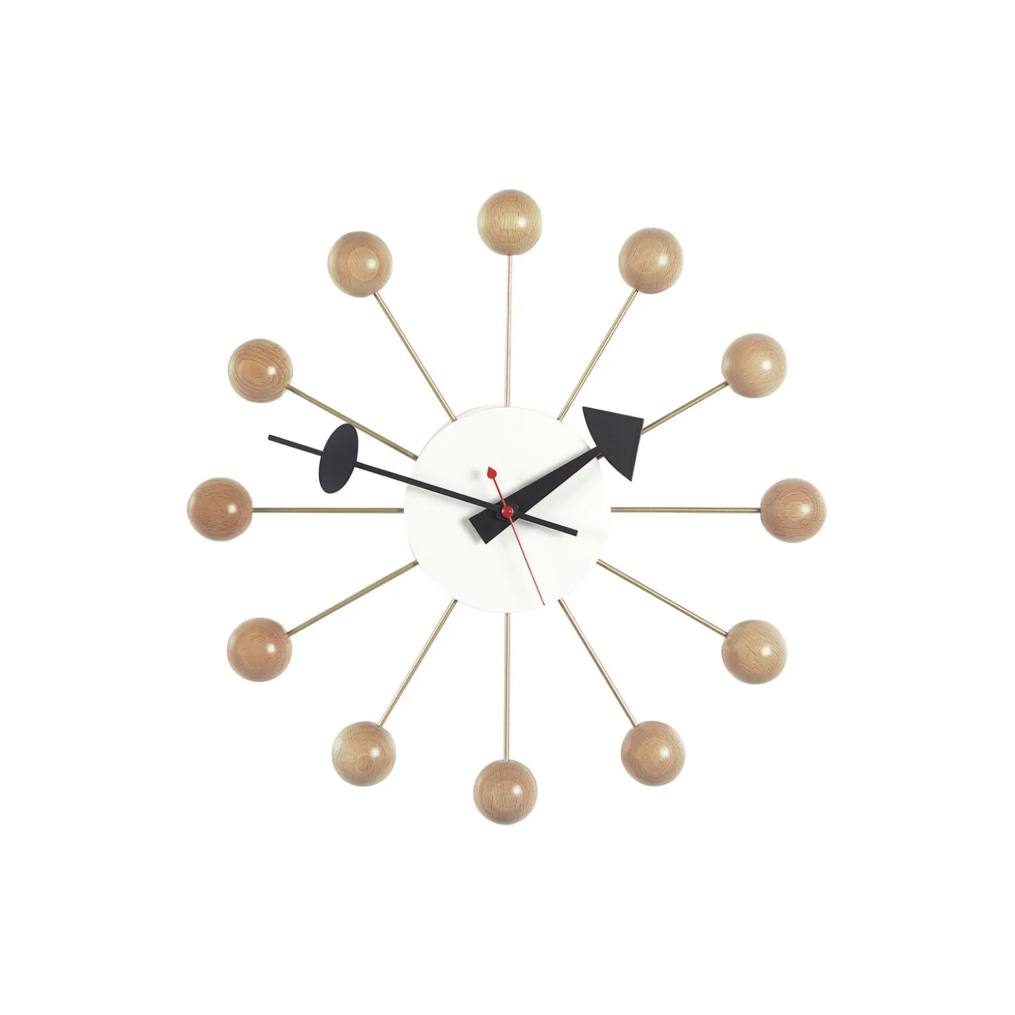 Ball vægur i træ og metal fra Vitra. Farve: natural beech. Mål: Ø 13 cm. Design: George Nelson.