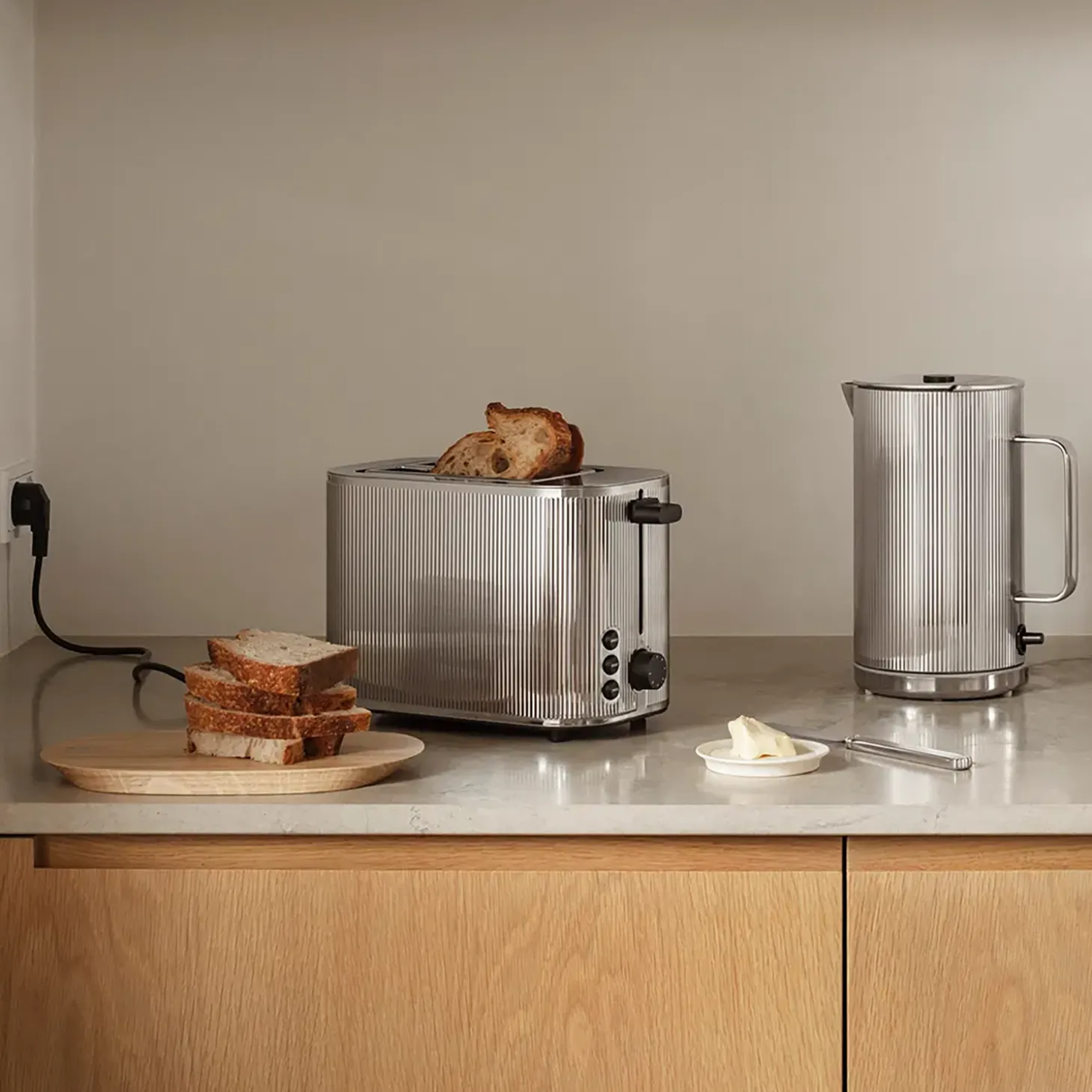 Den flotte Bernadotte kedel i rustfrit stål forener sofistikeret design med funktionalitet for at skabe et uundværligt køkkenudstyr, som skiller sig ud. Det ikoniske, riflede design fra den populære Bernadotte kollektion går igen i elkedlens design og giver den et elegant udtryk. Kedlen er designet til daglig brug og rummer op til 1,5 liter. Den har en separat base, som gør det nemt at håndtere elkedlen. En automatisk stop-funktion aktiveres, når vandet rammer kogepunktet, og elkedlen er dobbeltvægget og holder godt på varmen.