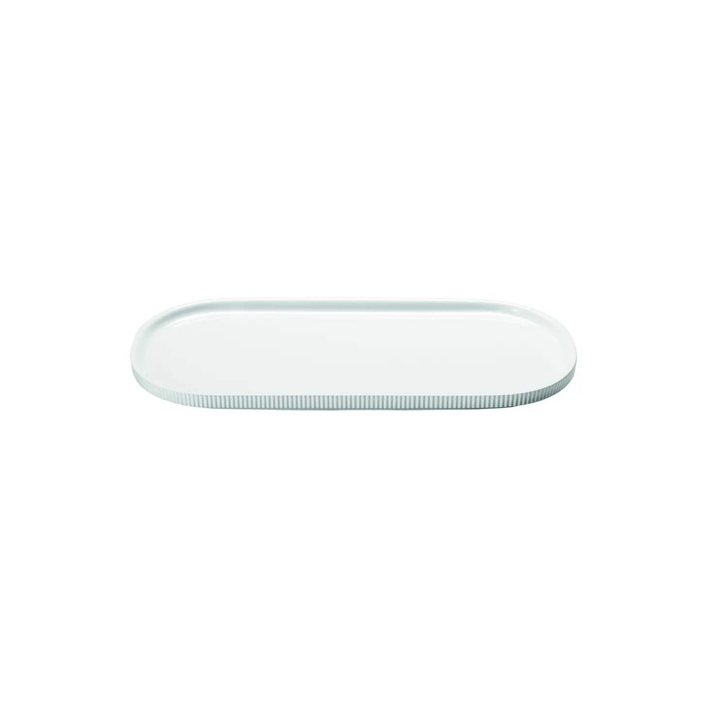 Serveringsfadet forener Bernadotte kollektionens riflede mønster med moderne design i hvidt porcelæn. Det enkle fad er et indbydende element på bordet, som præsenterer maden med elegance, og den forhøjede kant gør det nemt at bære serveringsfadet. Med sit minimalistiske design er fadet både elegant i sig selv og i kombination med tallerkener, skåle og glas fra Bernadotte kollektionen.