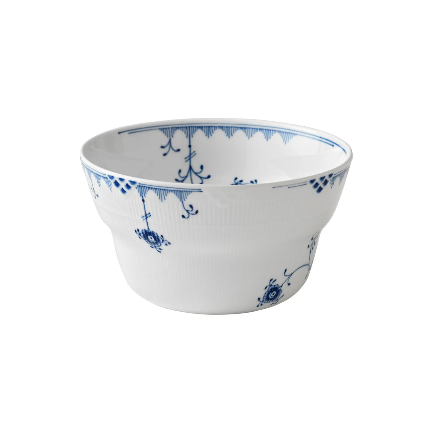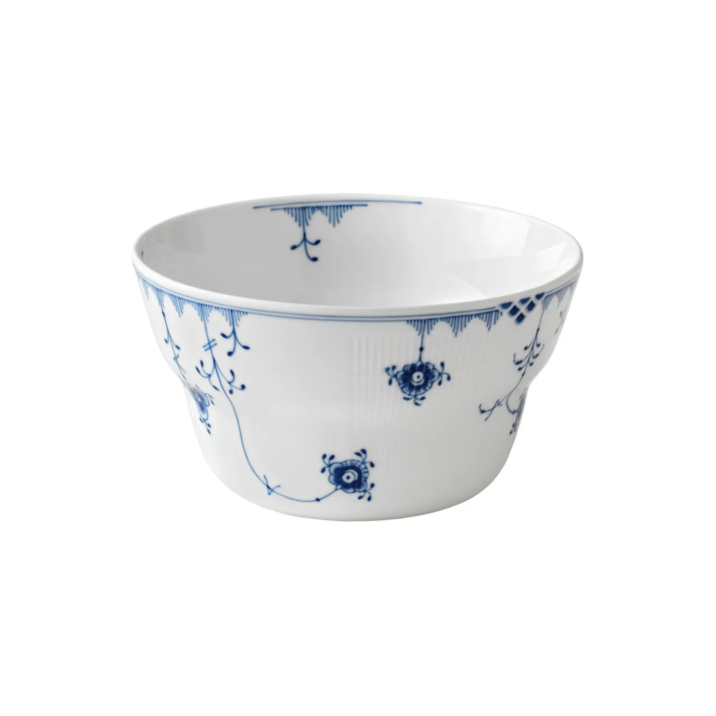 Blå Elements skål i porcelæn fra Royal Copenhagen. Enkelte håndmalede blomster snor sig på overfladen og bryder den stringente symmetri på denne Blå Elements Skål på 160 cl. Skålens nytænkende kombinationer af klassiske elementer fra Royal Copenhagens historiske stel skaber et uhøjtideligt udtryk til enhver bordækning og enhver anledning. Skålen er smuk til opbevaring af grønt i køkkenet eller som en lille serveringsskål på bordet.