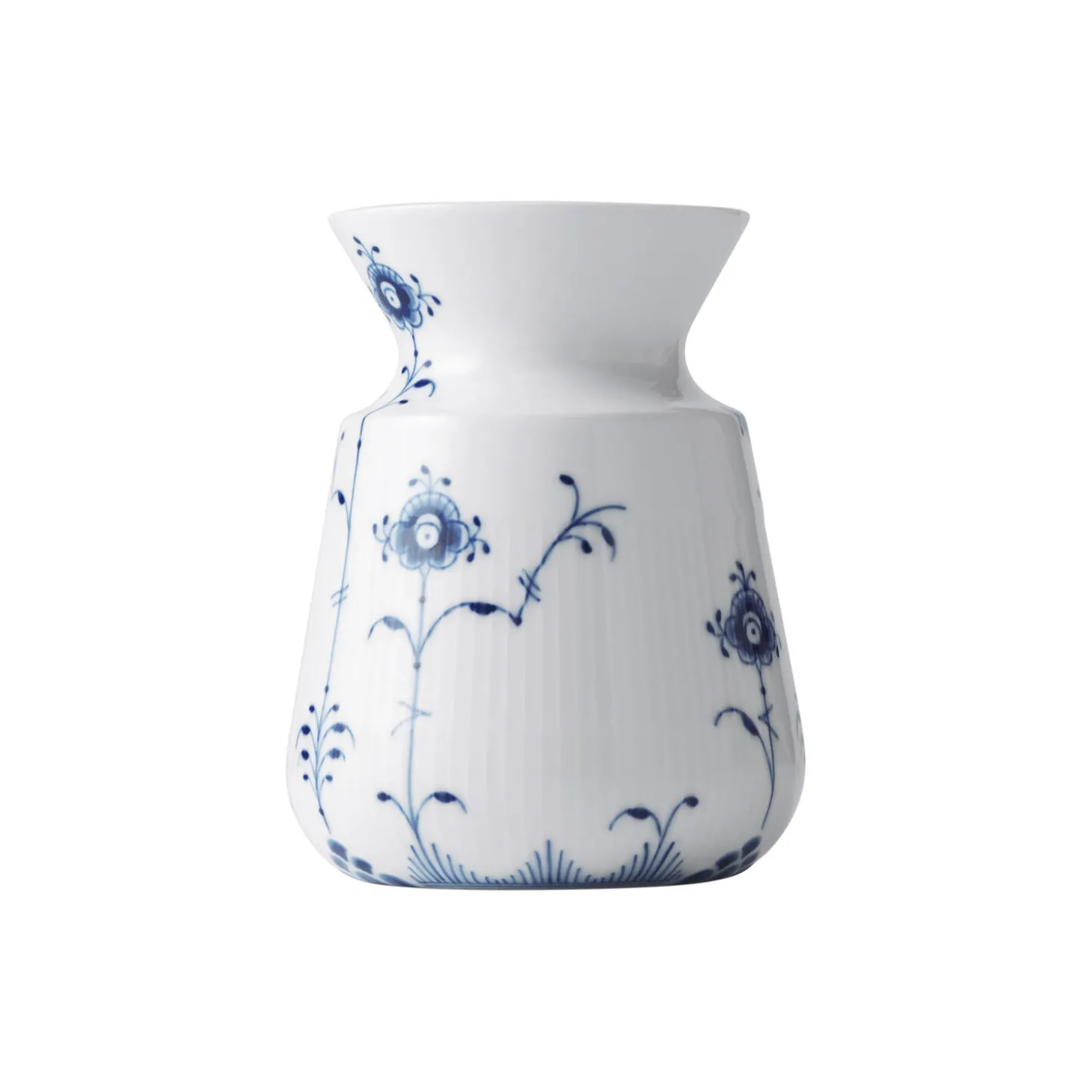 Blå Elements vase i porcelæn fra Royal Copenhagen. Den største af de to Blå Elements vaser er en frisk fortolkning af klassisk vasedesign. Med sit iøjnefaldende formsprog og smukke, håndmalede mønster skiller vasen sig ud men passer samtidig ind overalt med sit charmerende udtryk. Vasen på 13 cm er prydet af taktile rifler, der skaber et modspil til vasens organiske formsprog.