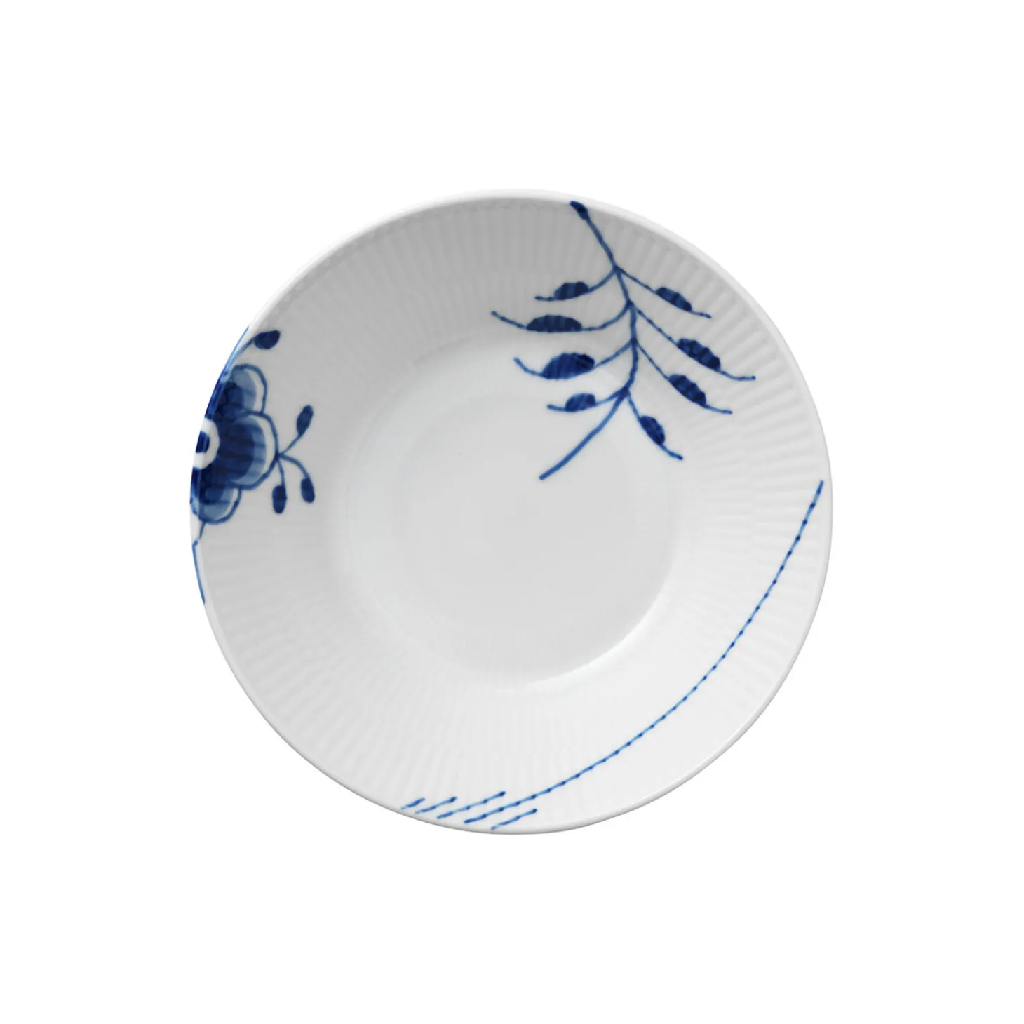 Blå Mega Riflet dyb tallerken i porcelæn fra Royal Copenhagen. Denne Blå Mega Riflet Dyb Tallerken på 17 cm har et enkelt udtryk, som vil gøre sig godt på ethvert bord. Både ydersiden og indersiden af tallerkenen er håndmalet med blå detaljer, så det elegante mønster træder frem fra alle sider.
