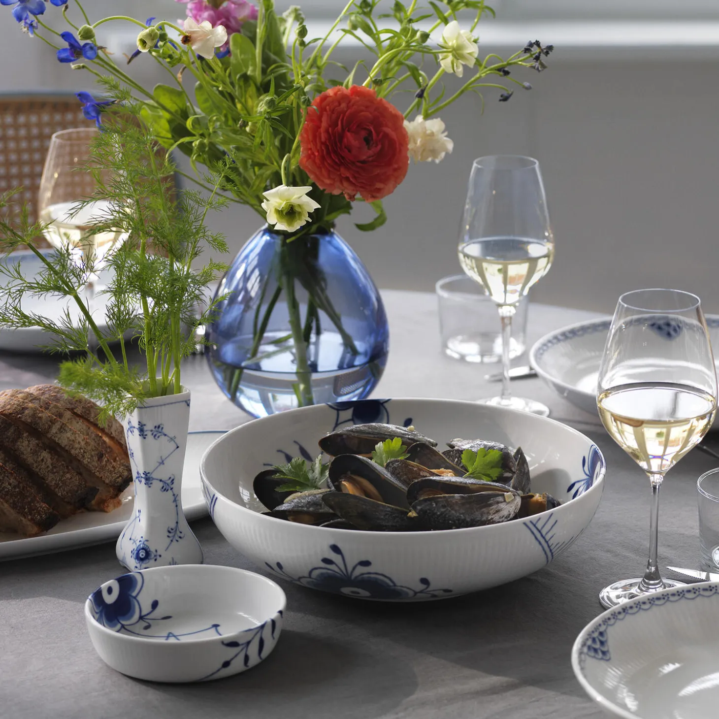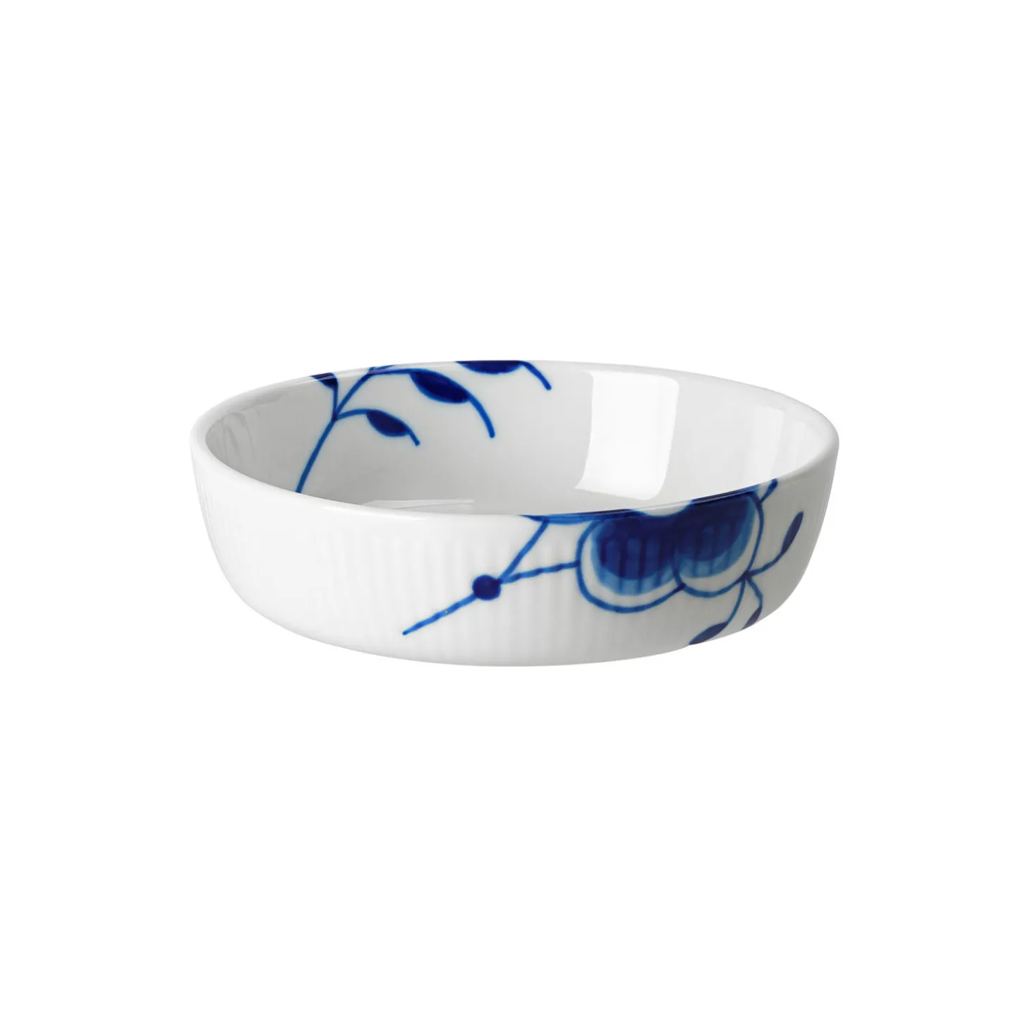 Blå Mega Riflet fad i porcelæn fra Royal Copenhagen. Man siger, alt godt kommer i små pakker, og det gælder også denne Blå Mega Riflet tallerken på 12,5 cm, der er ideel til desserter eller andre små anretninger.
