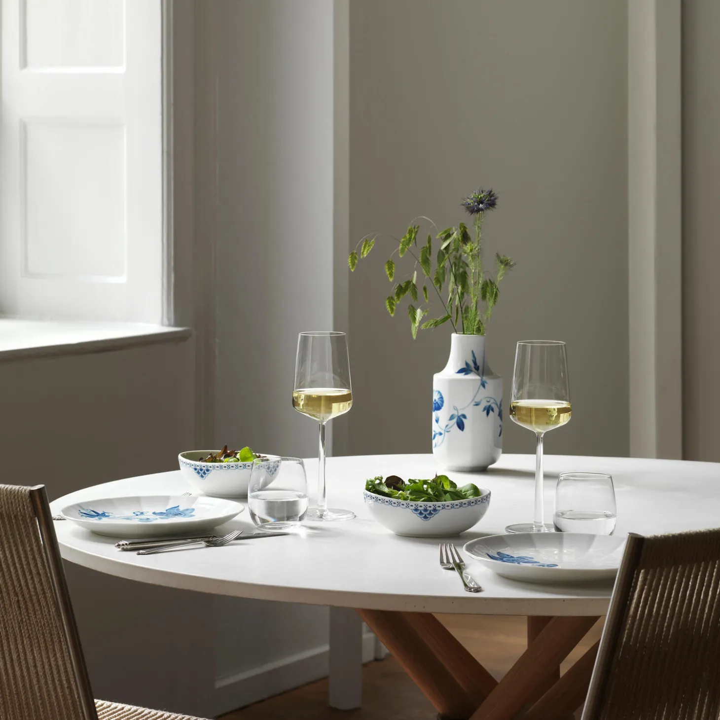 Blomst tallerken i porcelæn med lilje motiv fra Royal Copenhagen. Den yndefulde lilje strækker sine støvdragere på den vinklede Coupe-Tallerken på 27 cm fra blomst-stellet. Liljen er håndmalet i en dragende teknik, der skaber en dramatisk og livlig dekoration. Tallerkenen er ideel som middagstallerken eller et serveringsfad på et veldækket bord.