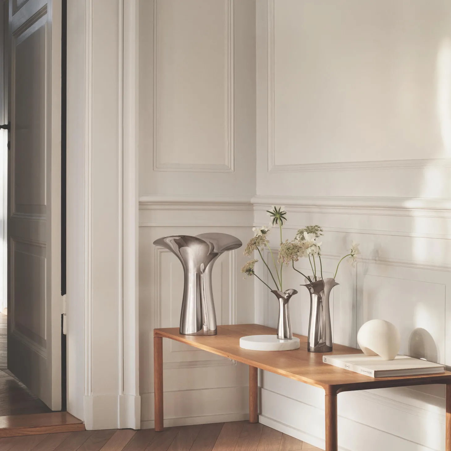 Bloom Botanica vasen er designet med inspiration fra det helt særlige øjeblik, hvor en blomsterknop springer ud. Det åbne design byder foråret velkommen, fuld af optimisme og håb efter en mørk vinter. Brug vasen alene eller sammen med andre vaser for at skabe et unikt look. Tom eller fuld af friske blomster – uanset vil den skulpturelle vase pynte i hjemmet.