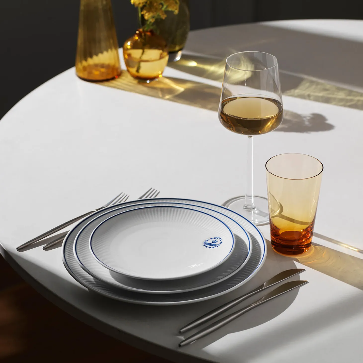 Blueline coupe tallerken i porcelæn fra Royal Copenhagen. Designet på Blueline Coupe tallerken 27 cm forener et af de mest udfordrende kunsthåndværk med et af de mest enkle udtryk. Coupe tallerkenen i Blueline er en elegant tallerken uden kant. Det enkle design gør den perfekt til både et smukt dækket spisebord og til dekoration i ethvert af husets rum.