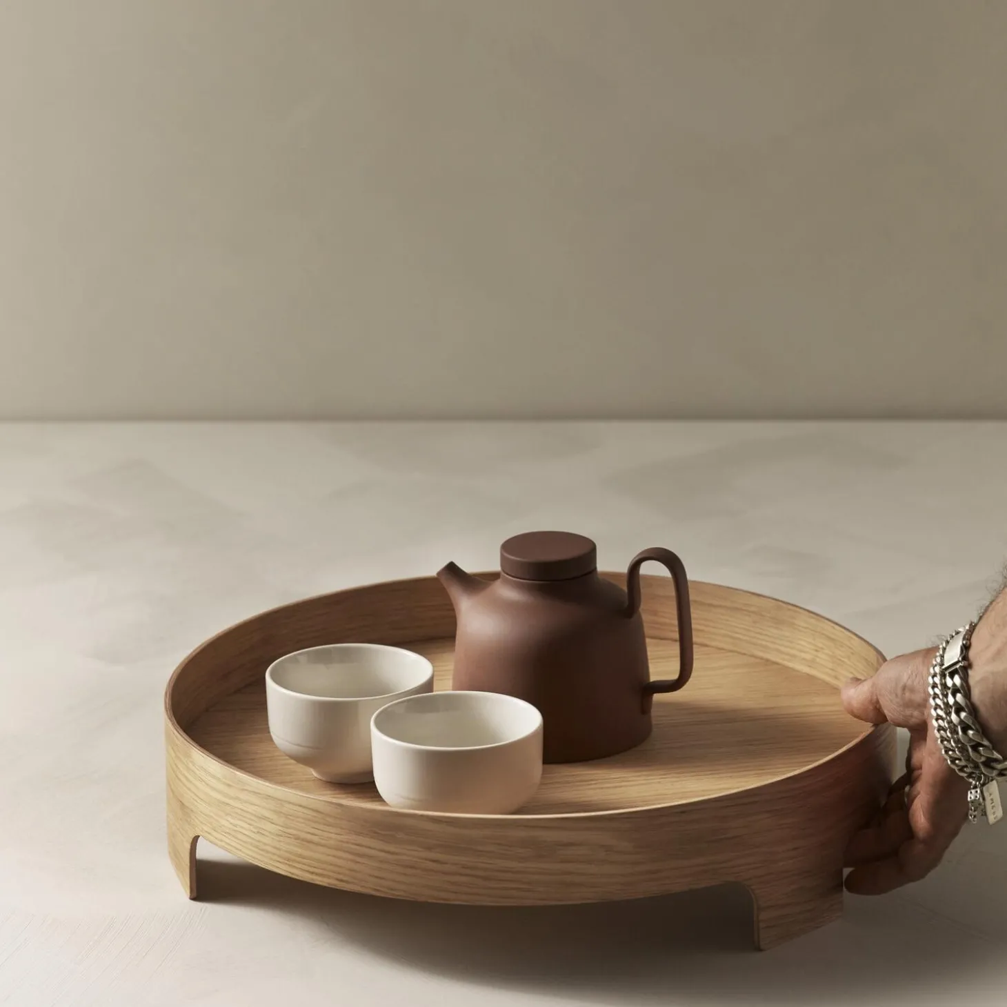A tray that will collect sparse objects on the floor, on a table. A little table in its own right that will create order in any busy space. Does a table require legs, one might wonder? Not at all. Vice versa, could a tray have legs? Yes, but a rim with slits instead of legs, all according to Carina Seth Andersson. Her Bridge Tray will be as content on the floor, brought outside, to another room, resting on a specially designed pouf, or on a table. A flexible piece of furniture that facilitate the use of any space. ’I often work sitting on the floor,’ Carina Seth Andersson explains, ‘and I prefer not having to risk spilling things lifting a tray by the corner, or trip over protruding handles. Bridge Tray sits a little bit up from the floor, and you easily grip it thanks to the slits.’ She uses it on large table as well: just to pick it up and carry away to its next setting. Her creation is a distinctive visual response to a typological challenge for ever-changing modern spaces, be it at home or in a public setting. A tray that doubles as a small table. The tray was originally born in Taiwan where Carina Seth Andersson along with five Swedish designers was invited by NTCRI (the National Taiwan Craft Research and Development Institute) to create contemporary interpretations of traditional Taiwanese lacquer art. Now in finely grained oak plywood that evokes a finely crafted Scandinavian natural look.