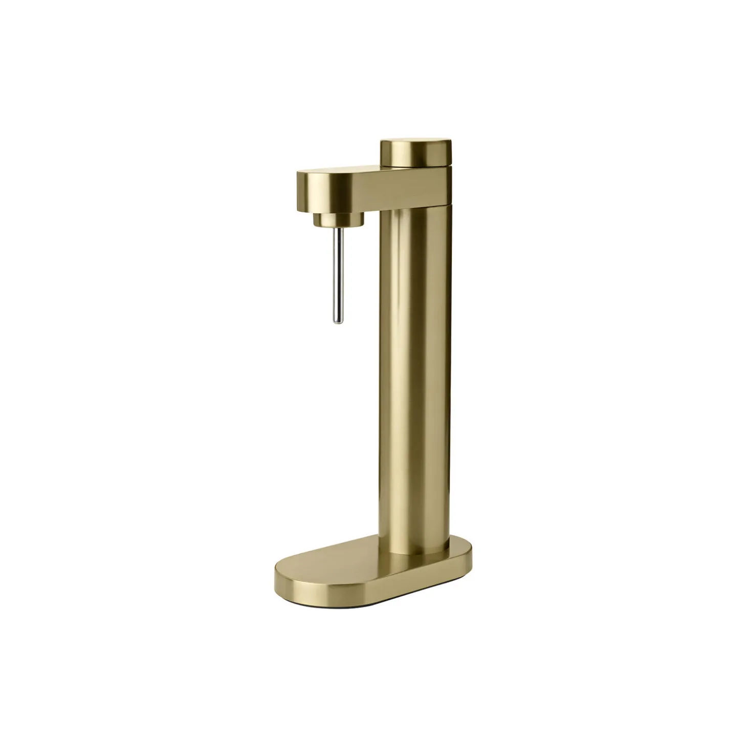 Med Brus kulsyremaskine sparer du miljøet for store mængder af unødigt plast ved at lave din egen danskvand eller sodavand i genanvendelige flasker. Designet af sodavandsmaskinen er så elegant, at du kan glæde dig over at have den stående fremme på køkkenbordet. Designeren bag, Søren Refsgaard er kendt for sit rene funktionelle design, hvor alt overflødigt er skåret væk. Det er Brus et særdeles godt eksempel på. Designet trækker på de cylindriske former, der er klassisk for Steltons design. Den cylindriske form ses først og fremmest i den ultraslanke beholder til kulsyrepatronen og går igen i kulsyreknappen, der intuitivt drejes med uret for at tilpasse mængden af kulsyre og drejes kontra, når flasken skal løsnes fra maskinen. Brus kulsyremaskine leveres med et styk Brus flaske.