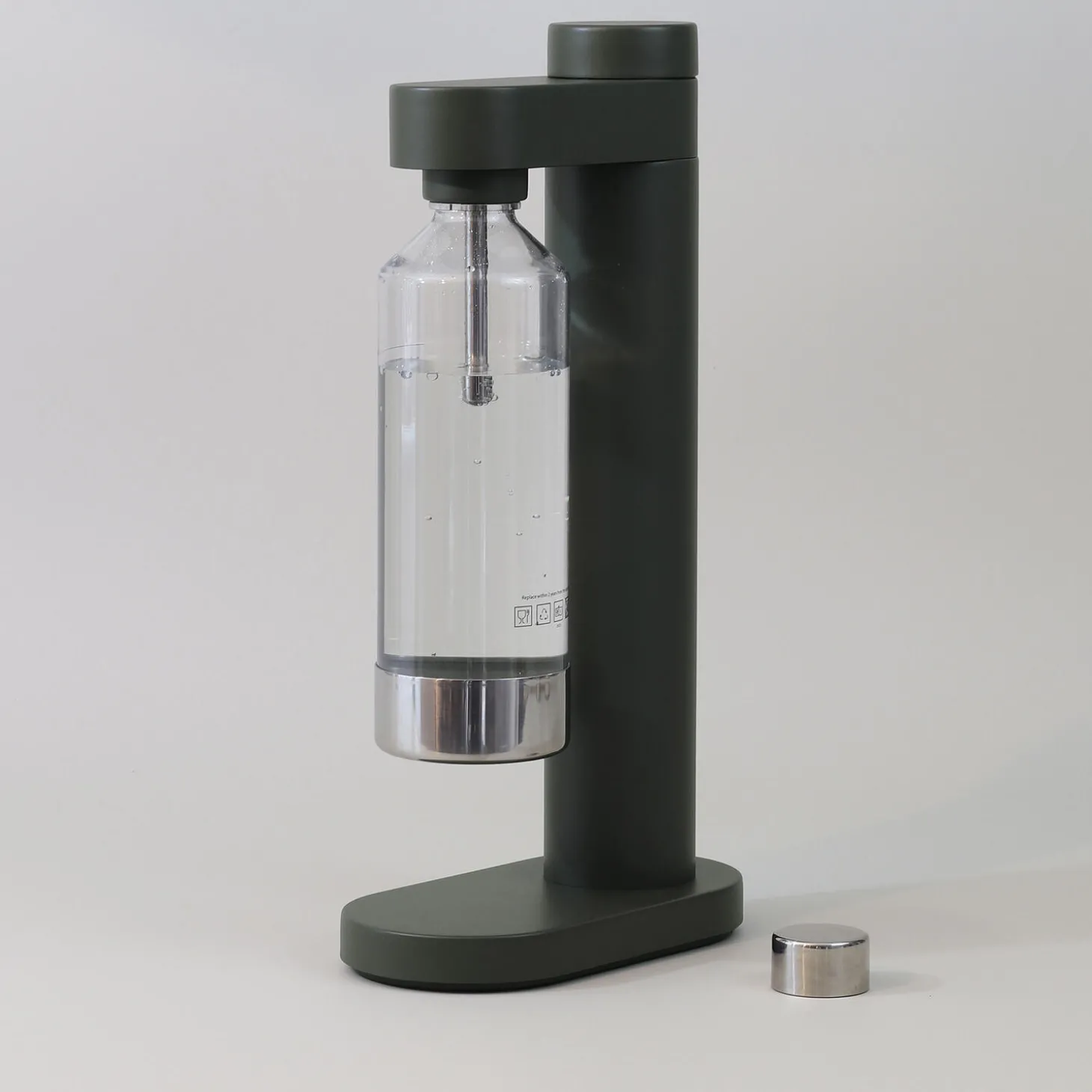 Med Brus kulsyremaskine sparer du miljøet for store mængder af unødigt plast ved at lave din egen danskvand eller sodavand i genanvendelige flasker. Designet af sodavandsmaskinen er så elegant, at du kan glæde dig over at have den stående fremme på køkkenbordet. Designeren bag, Søren Refsgaard er kendt for sit rene funktionelle design, hvor alt overflødigt er skåret væk. Det er Brus et særdeles godt eksempel på. Designet trækker på de cylindriske former, der er klassisk for Steltons design. Den cylindriske form ses først og fremmest i den ultraslanke beholder til kulsyrepatronen og går igen i kulsyreknappen, der intuitivt drejes med uret for at tilpasse mængden af kulsyre og drejes kontra, når flasken skal løsnes fra maskinen. Brus kulsyremaskine leveres med et styk Brus flaske.