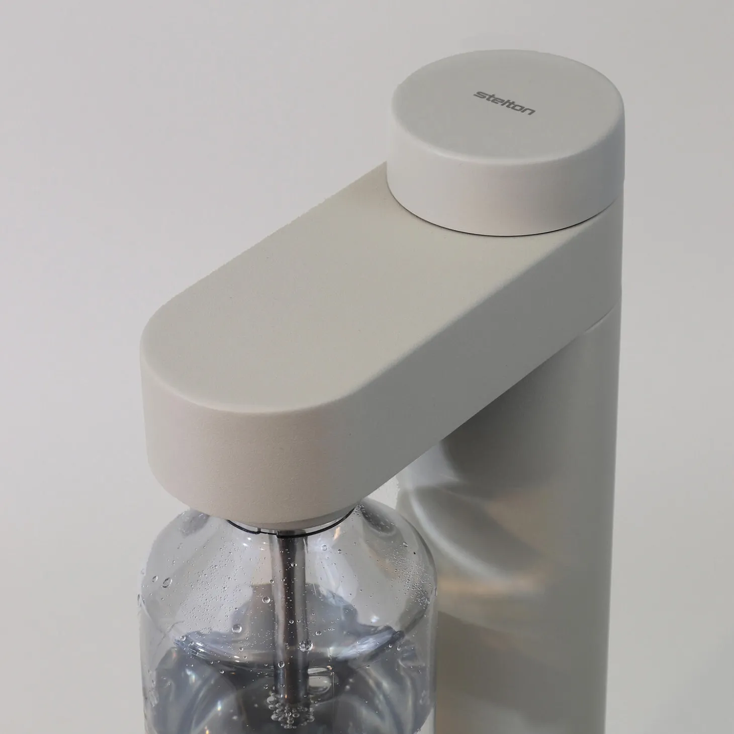 Med Brus kulsyremaskine sparer du miljøet for store mængder af unødigt plast ved at lave din egen danskvand eller sodavand i genanvendelige flasker. Designet af sodavandsmaskinen er så elegant, at du kan glæde dig over at have den stående fremme på køkkenbordet. Designeren bag, Søren Refsgaard er kendt for sit rene funktionelle design, hvor alt overflødigt er skåret væk. Det er Brus et særdeles godt eksempel på. Designet trækker på de cylindriske former, der er klassisk for Steltons design. Den cylindriske form ses først og fremmest i den ultraslanke beholder til kulsyrepatronen og går igen i kulsyreknappen, der intuitivt drejes med uret for at tilpasse mængden af kulsyre og drejes kontra, når flasken skal løsnes fra maskinen. Brus kulsyremaskine leveres med et styk Brus flaske.