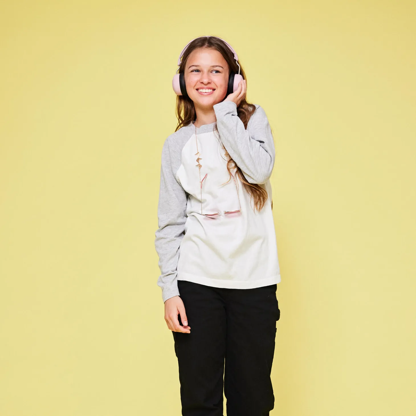 Mød Buzz høretelefonerne, de perfekte lydfølgesvende for børn. Disse høretelefoner har en skøn kombination af klar og afbalanceret lyd. De har ikke kun et stilfuldt design, men er også ultra-komfortable med deres ørepuder, der er lige så bløde som skumfiduser. Uanset om børnene er derhjemme eller på farten, er Buzz det perfekte must-have for at nyde musik, film og spil. Høretelefonerne begrænser lydstyrken til højst 85 dB, hvilket beskytter små ører mod høje lyde samtidig med at give dem en førsteklasses lydoplevelse. ANC-funktionen (Active Noise Cancellation) får magisk al omgivende lyd til at forsvinde, og Qi-funktionen giver dig mulighed for at oplade dem trådløst på vores Qi-opladere. Prøv at matche dem med Paddy – sammen udgør de et sødt par. De leveres med et robust etui, der sikrer, at høretelefonerne er trygt opbevaret og beskyttet.