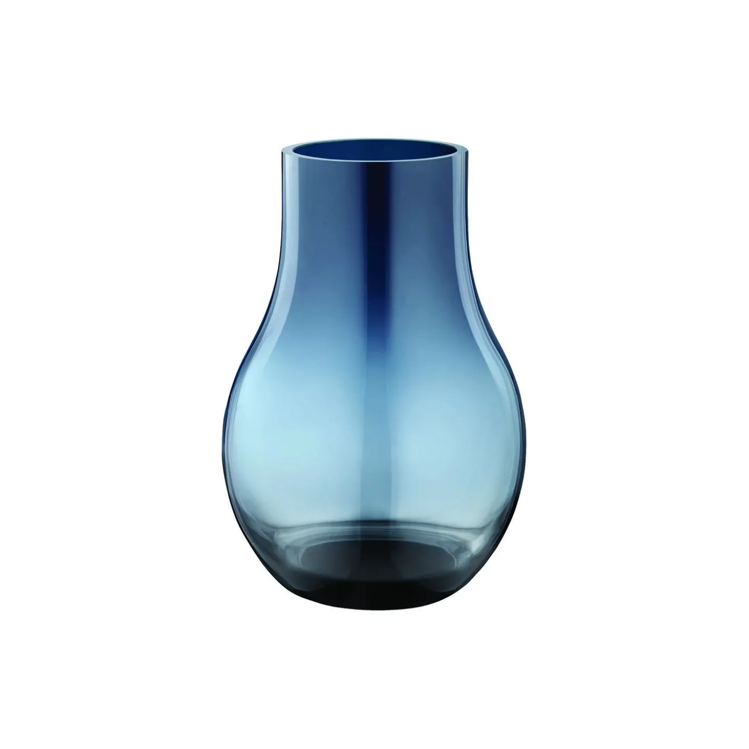 Cafu vase i glas fra Georg Jensen. Farve: blå. Mål: H: 21,6 x Ø 14,8 cm. Størrelse: lille. Design: HolmbäckNordentoft.
