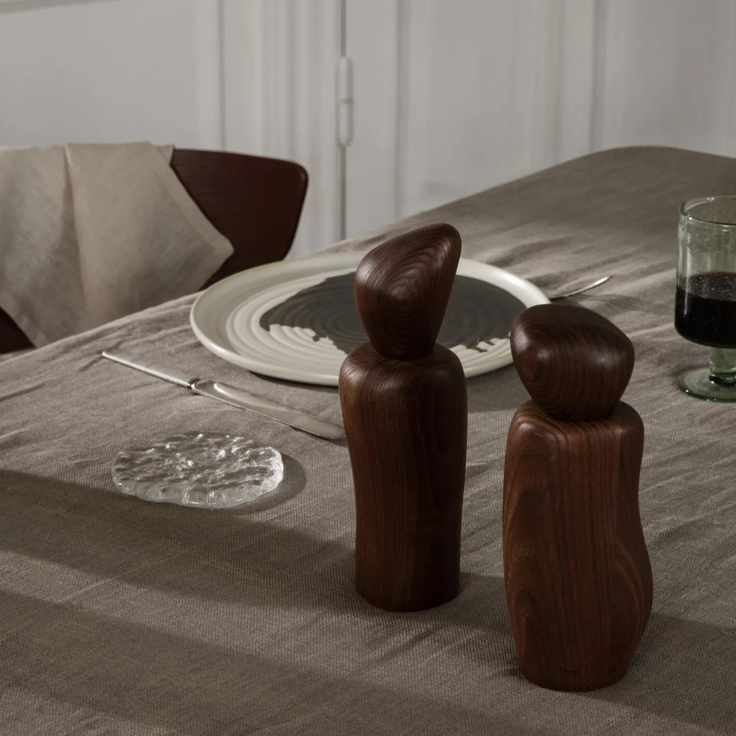 Cairn Grinder er kendetegnet ved sine bløde kurver og skulpturelle detaljer, der gør dig i stand til stilfuldt at krydre dine kulinariske kreationer. Kværnen er fremstillet af FSC™-certificeret asketræ med en karboniseret finish, og den slående træform er inspireret af varder, menneskeskabte stenbunker, der ofte er rejst som mindesmærker. Sæt Cairn Grinder frem på dit køkken- eller spisebord for at tilføre dit rum et kunstnerisk og skulpturelt indtryk.