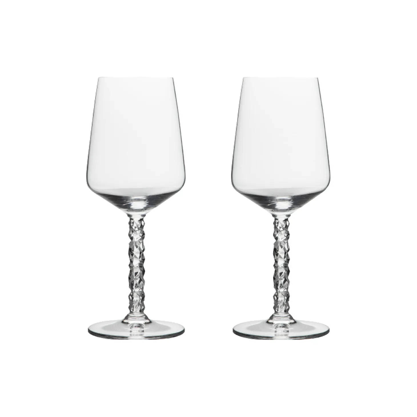 The Carat collection is based on a contemporary interpretation of the traditional glass grinding for which Orrefors is world-renowned. The irregular geometry produces beautiful reflections of light in the crystal. Carat Wine is versatile and was developed for various kinds of drinks. The stem of the glass is covered with the collection’s characteristic pattern. Designed by Lena Bergström.