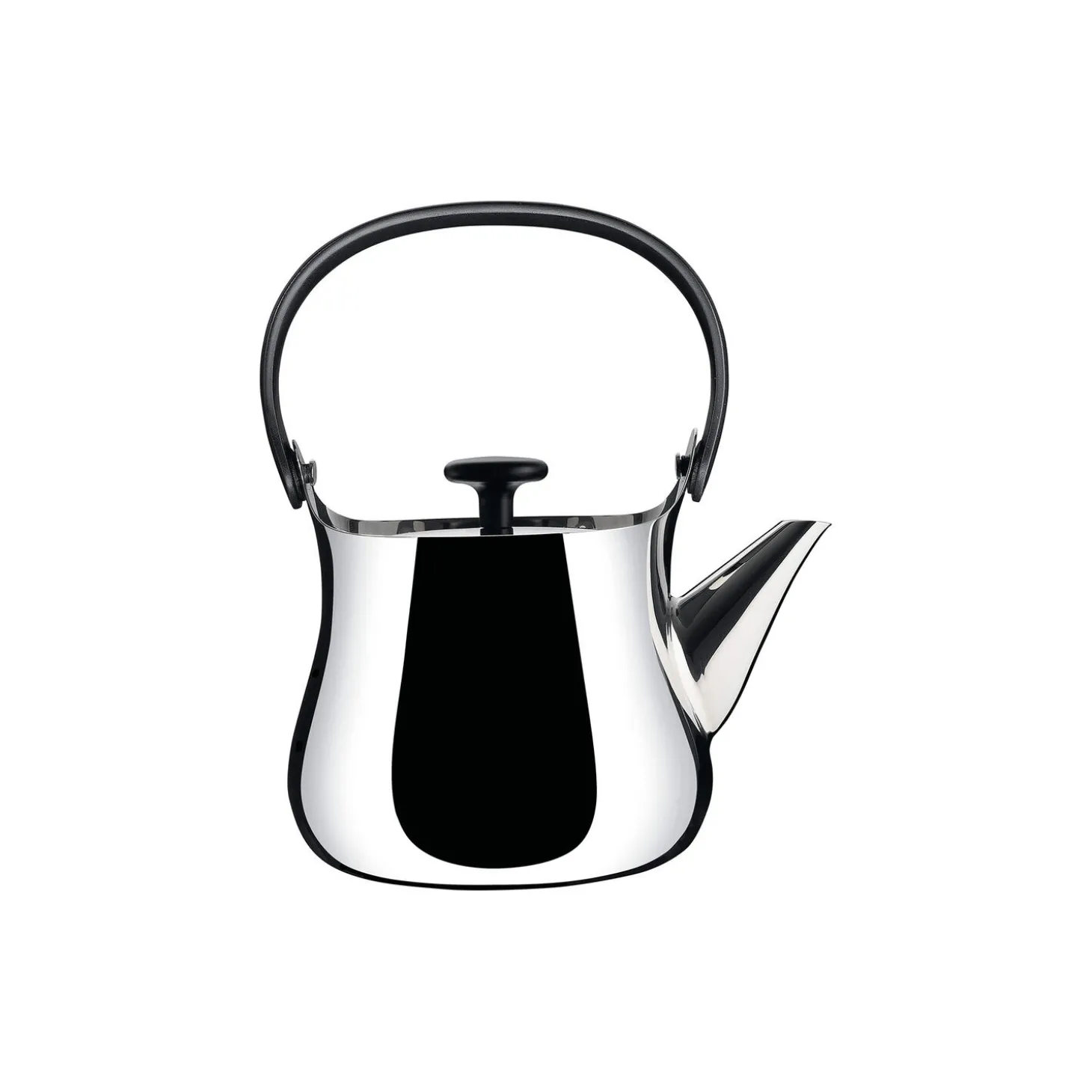 Cha kedel/tepotte i blankpoleret rustfrit stål og termoplast fra Alessi. Farve: stål. H: 22 x L: 19 x Ø 14 cm. Indeholder: 0,9 L. Design: Naoto Fukasawa.