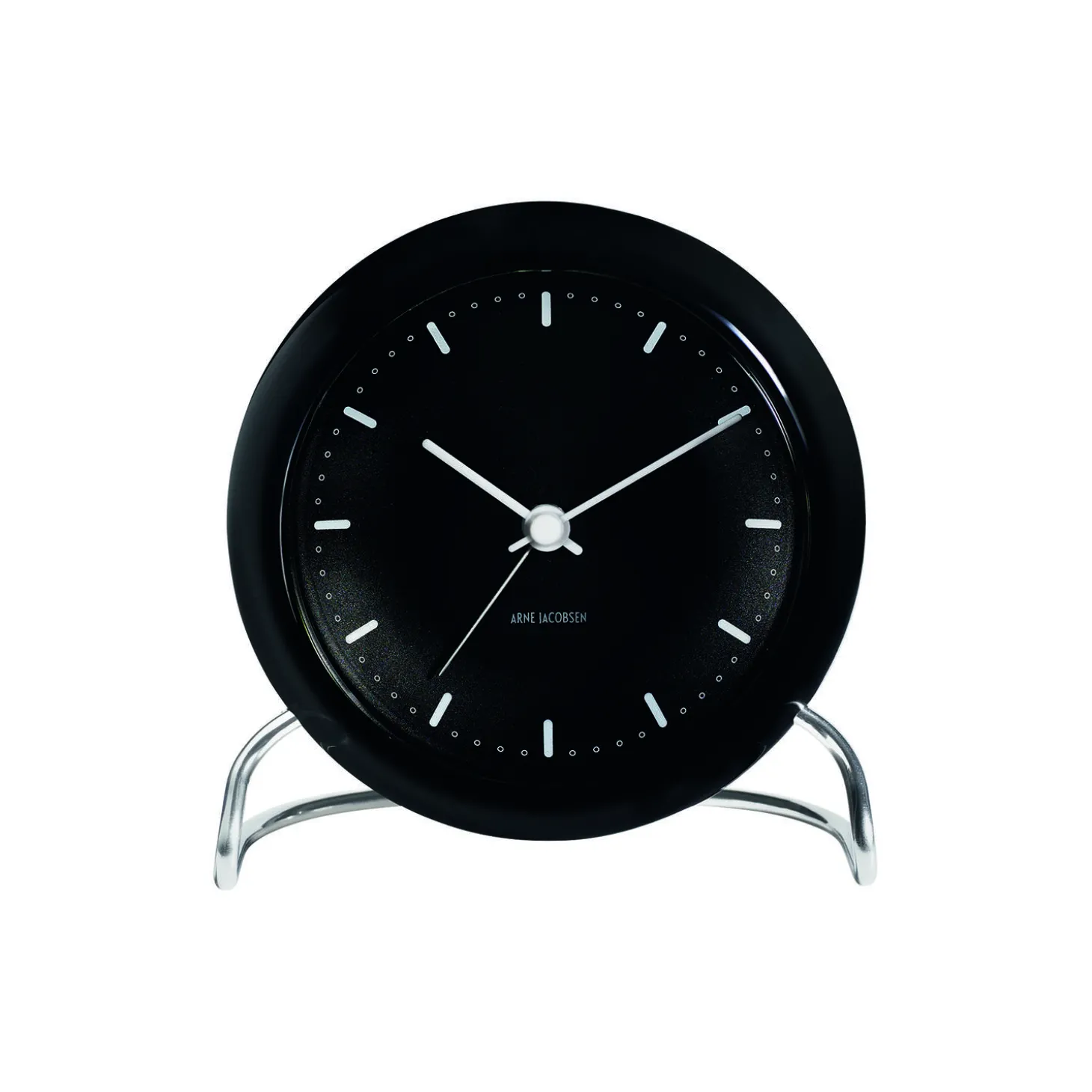 Arne Jacobsens bordur blev oprindeligt udviklet i 1939 til elvareproducenten LK med en klassisk, enkel urskive. Men Jacobsen designede også en række andre ure heriblandt City Hall uret til Rødovre Rådhus. City Hall uret er elsket af danskerne for sit universelle udtryk, og derfor var det oplagt også at lave City Hall uret som bordur. Udover at være et dekorativt indslag overalt i hjemmet har uret de nødvendige vækkeursfunktioner til alarm, snooze og lys. En sensor gør, at både lys og snooze aktiveres ved en let bevægelse med hånden over uret. En fin gaveide til en særlig anledning.