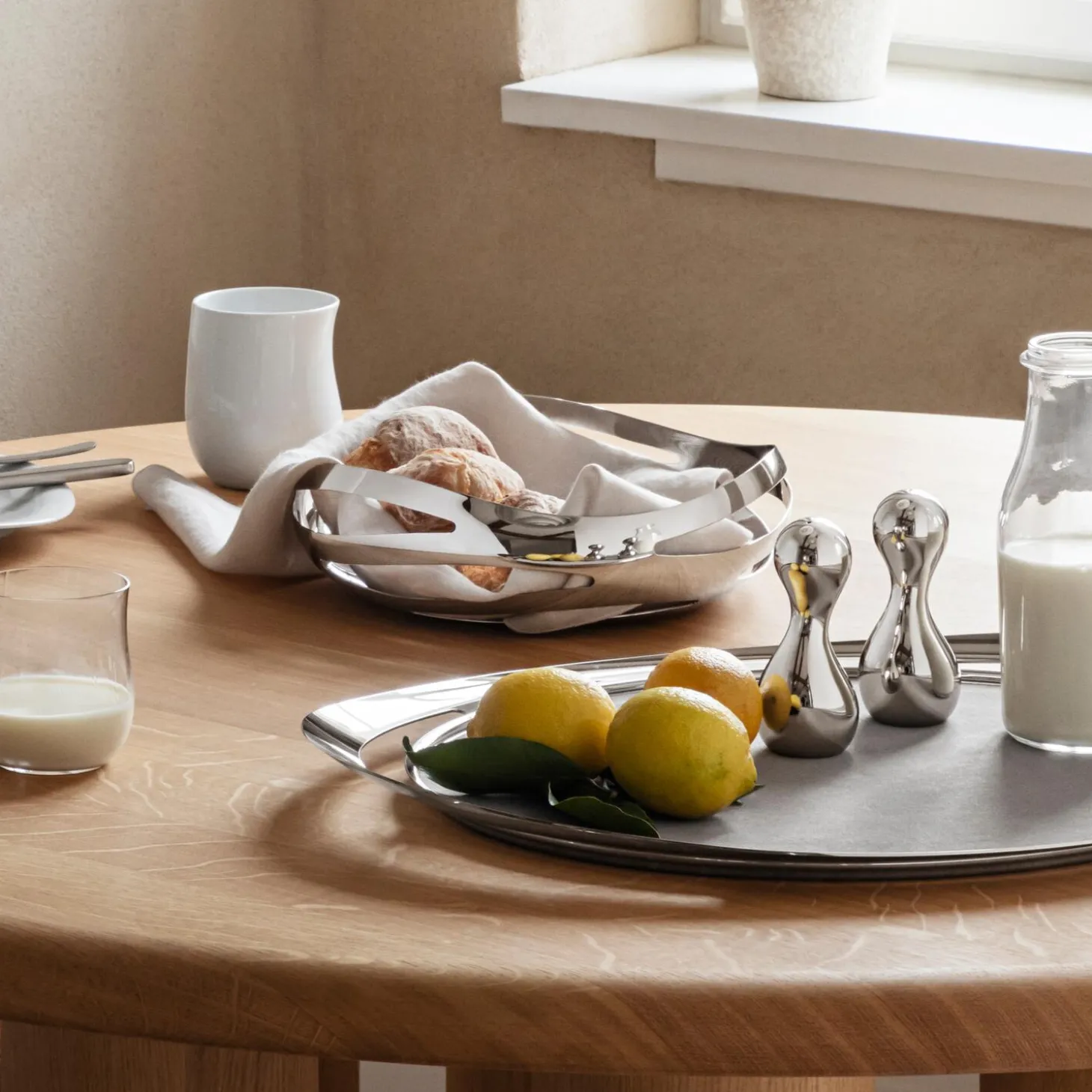 Cobra salt og peber-sættet fuldender borddækningen med moderne design og klassisk funktionalitet. De bløde og ergonomiske linjer i rustfrit stål er en indbydende detalje, som både klæder bordet til hverdag og ved særlige lejligheder. Salt og peber-sættet former sig nærmest som to små personfigurer og tilfører måltidet et strejf af humor.
