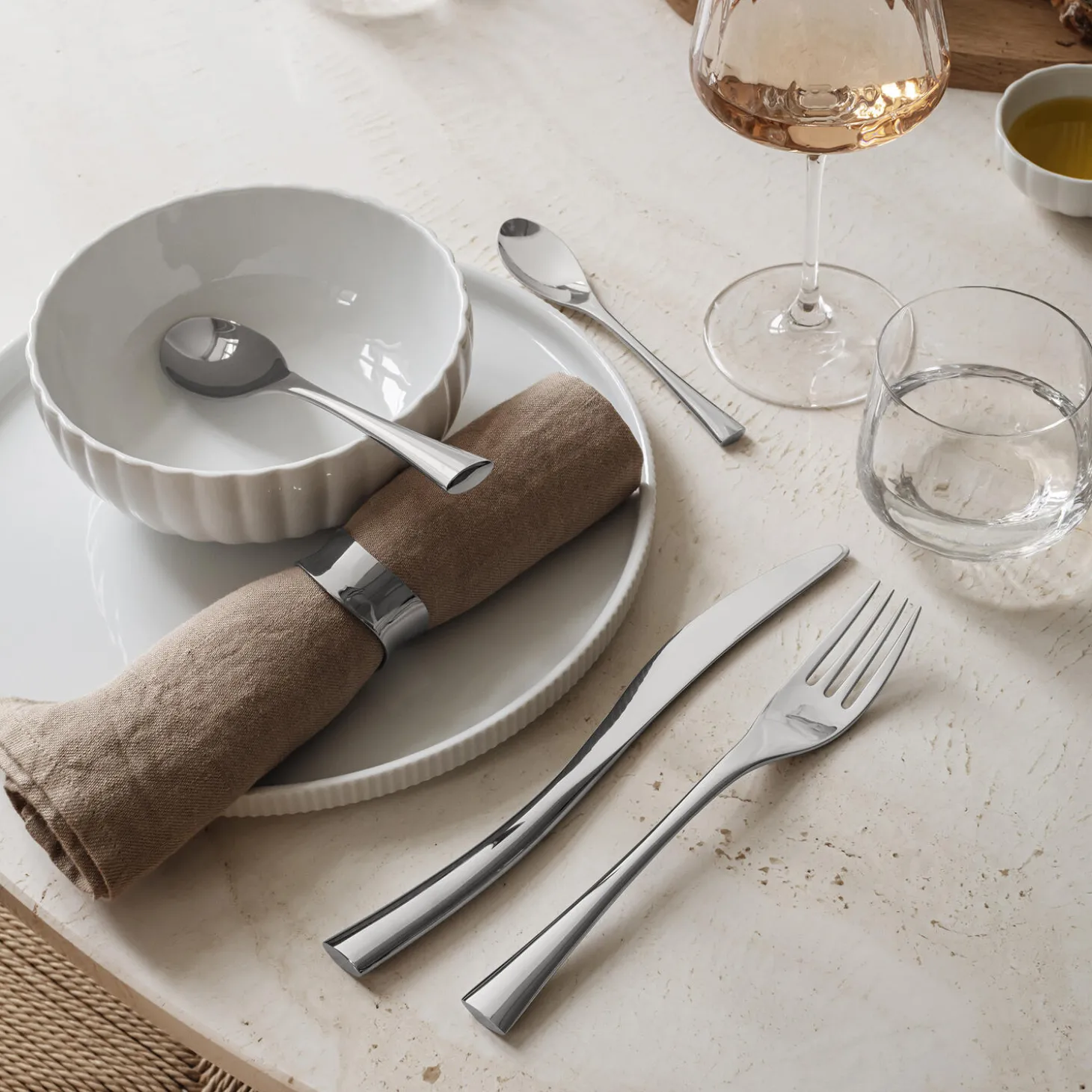 Fuldend din borddækning med disse to servietringe i rustfrit stål fra Cobra kollektionen. Servietringene er designet af Constantin Wortmann, og den bølgende stil udstråler klassisk elegance og et legende design. De er fremstillet med stor ekspertise og vil løfte enhver middagsoplevelse. Servietringene er lette, nemme at rengøre og indgraveret med Georg Jensens logo. Produktet tåler ikke opvaskemaskine.