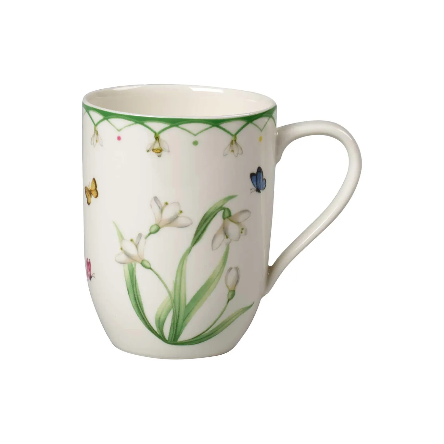 Snowdrops are the first messengers of spring. Welcome spring into your home with the delicate flowers and colourful butterflies from the Colourful Spring collection. These coffee mugs with a snowdrop motif from Colourful Spring are perfect for enjoying tea, coffee or cocoa during breakfast with friends and family. Let your home blossom.