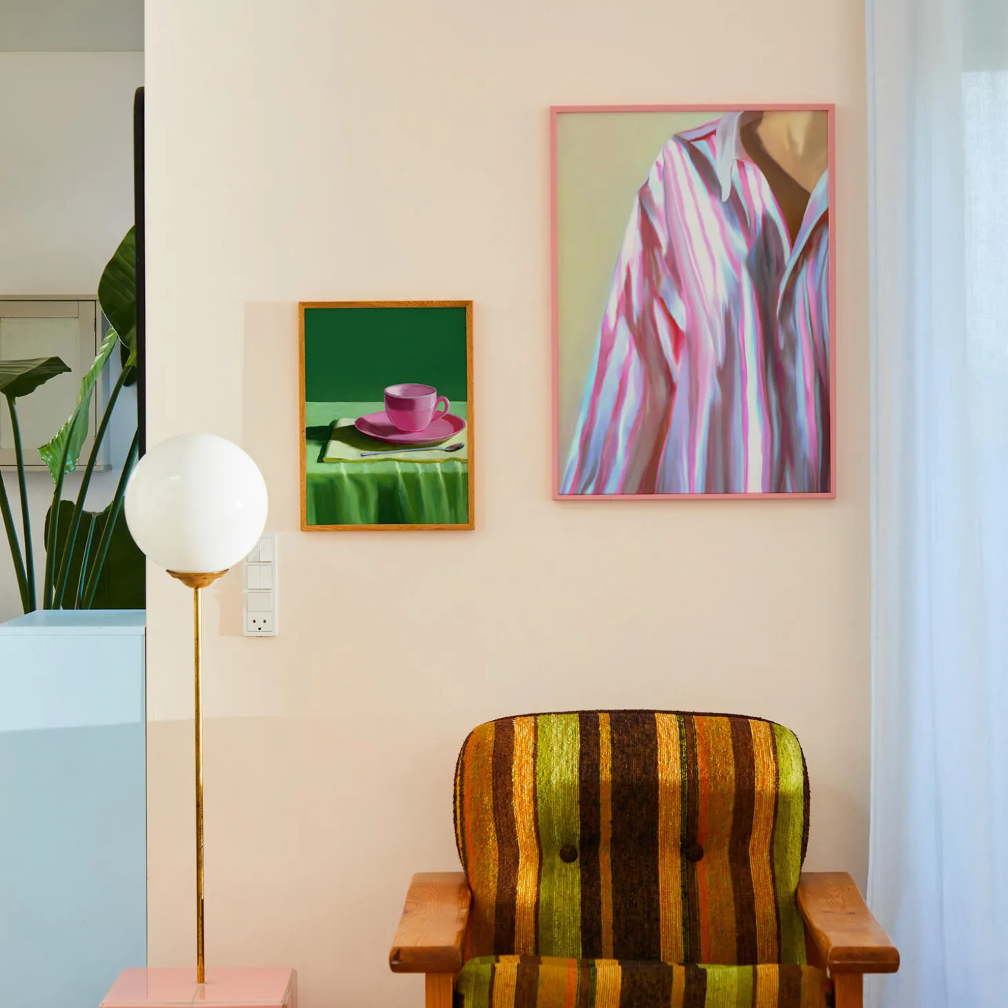Dad Shirt by Danish art group Misfitting Things features a fuzzy mix of colour, texture, light and shadow created by layers of digital paint. Wearing an oversized shirt with white and pink stripes, the obscured figure looks as if they have just rolled out of bed or are preparing for a business meeting – capturing a sense of mystique set between the formal and informal. Frame not included.