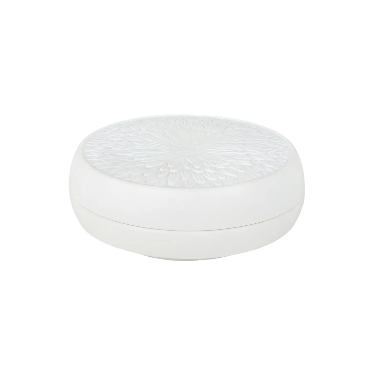 Special Edition bonbonniere Daisy i porcelæn fra Royal Copenhagen. Med respekt for hvervet som Kongelig Hofleverandør har Royal Copenhagen skabt et særligt produkt til at ære Hendes Majestæt Dronning Margrethe d. II i forbindelse med hendes 50-års Regeringsjubilæum, der fejres d. 14/1 2022. Royal Copenhagen har designet en speciel uglaseret bonbonniere prydet med et elegant relief af H.M. Dronningens yndlingsblomst, margueritten (Daisy), der også er H.M. Dronningens private kælenavn blandt familie og venner.