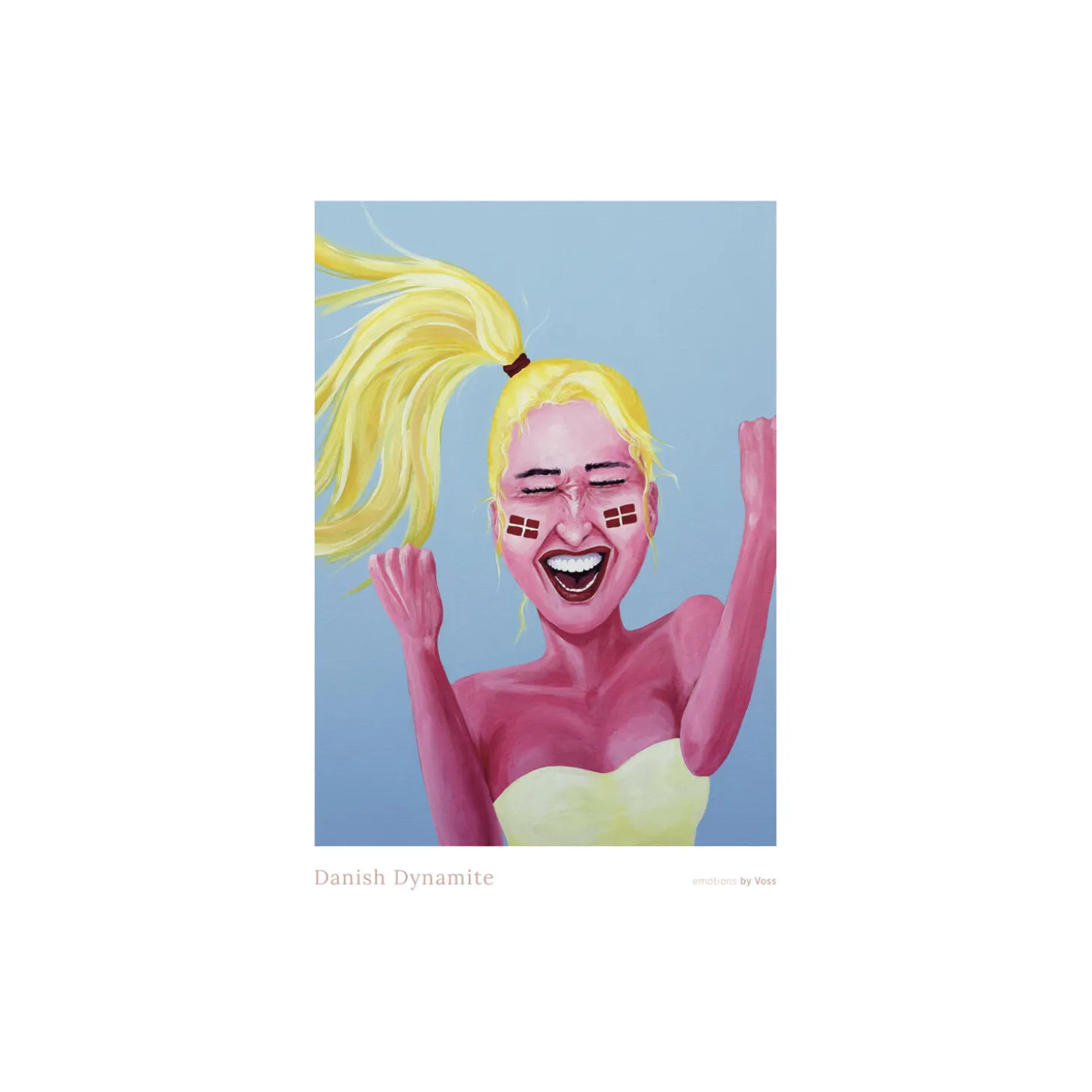 Danish Dynamite plakat fra All by Voss. Plakaten er kunsttryk af originalværket (akryl på lærred). Originalerne er fotograferet af kunstfotograf, Claudia Dons, og efterfølgende billedbehandlet for bedst muligt gengivelse. Komposition af grafiker Inge Rand. Produceret i Danmark.