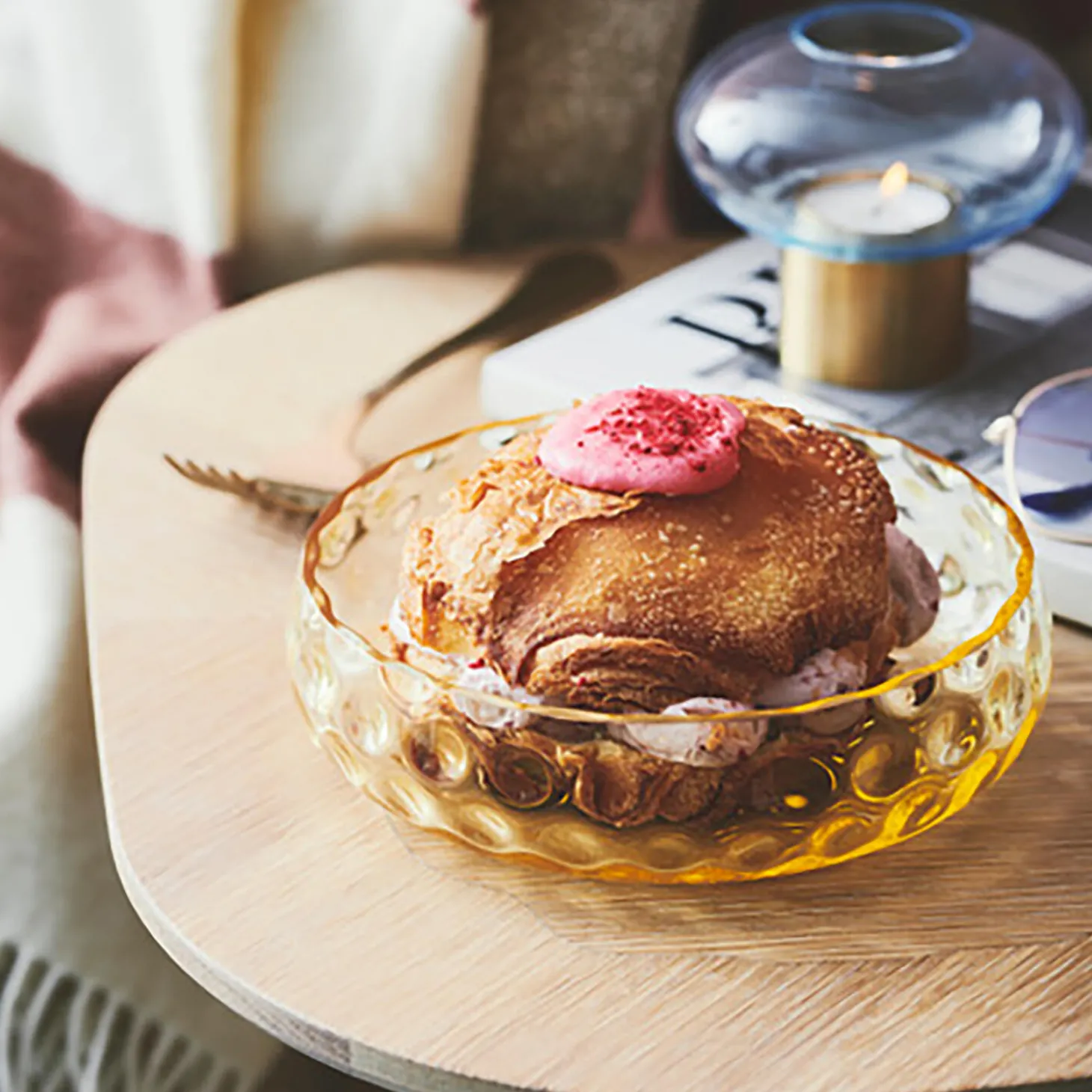 Vores Danish Summer Bowl blev til ved et tilfælde, da designet oprindeligt var tiltænkt som et cocktailglas. Undervejs i processen stod vi med toppen af glasset uden fod, og på den måde så vi designet fra en ny vinkel, da vi stod med en lille smuk skål i hånden. Skålen findes i tre forskellige størrelser, som har utallige anvendelsesmuligheder. Til salaten, fredagsslikken, morgenmaden, juledekorationen eller bare til pynt. Hver enkel skål er mundblæst og afrundet i træform, så alle produkter har sin egen unikke og varierende form, farve og mønster forenet i et stykke æstetisk kunsthåndværk.