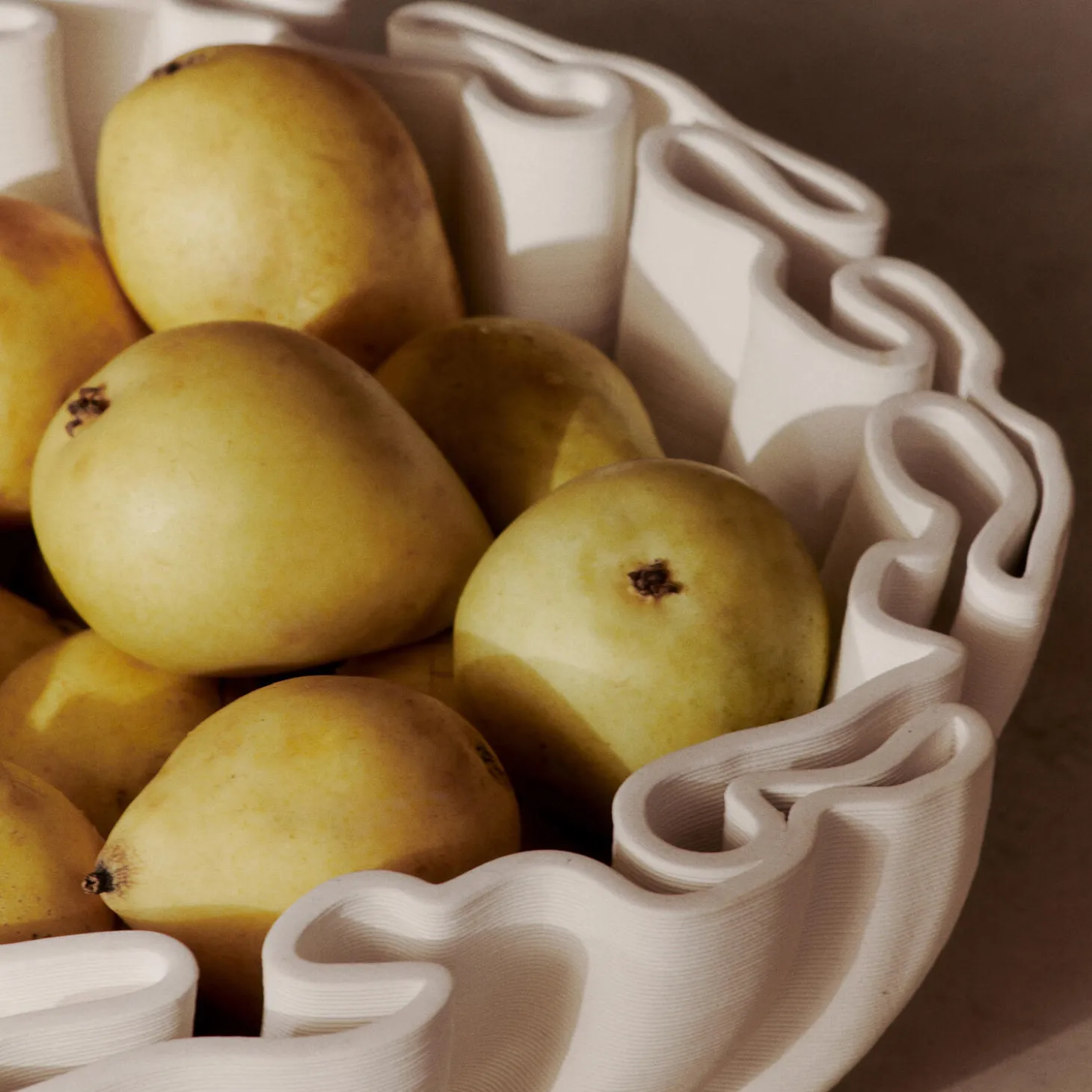 Dedali Skål bygger videre på Dedali Vasens komplekse design, der er inspireret af mønstret i en labyrint. Den er lavet af 3D-printet keramik og har præcise, detaljerede strukturer, som danner en moderne og taktil struktur. Skålen er både funktionel og dekorativ og er perfekt til frugt og pyntegenstande eller blot som et enkeltstående midtpunkt. Dedali Skål kombinerer det praktiske med det kunstneriske og sætter et delikat og sofistikeret præg på alle rum.