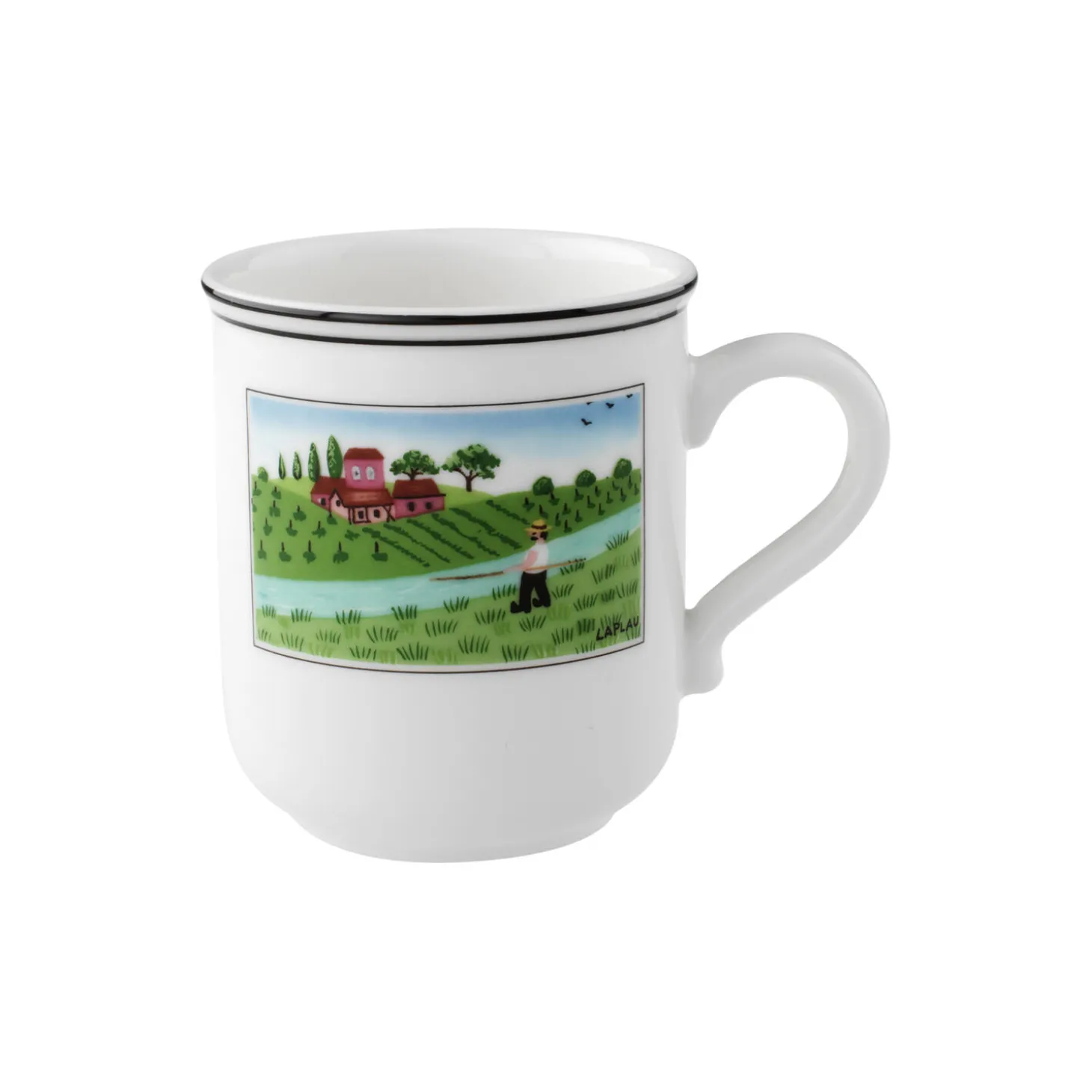 This mug forms part of Villeroy & Boch’s folk art design collection Design Naif and shows one out of six different mug designs. The rustic scenes featured on the individual items of this collection will add a touch of charm and atmosphere to any table. Designed by the Corsican artist Gérard Laplau, the decor has made an important contribution to establishing Design Naif as an art form all over the world. This premium porcelain is ideal for everyday use on the breakfast table or for an afternoon coffee break. Dishwasher safe and microwave safe.
