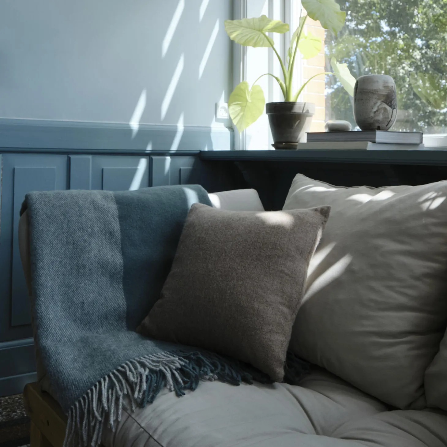 Drejø er vævet i 100% skandinavisk uld. et stramt udtryk med et grafisk præg. Afhængig af måden du folder plaiden på, er det muligt at skabe forskellige atmosfærer og udtryk.