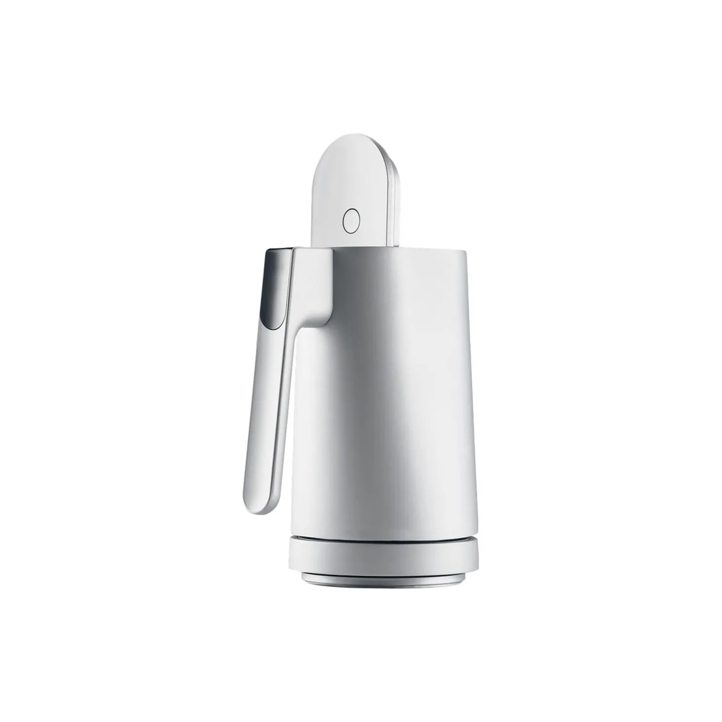 Med anvendelse af de højeste sikkerhedsstandarder og vores ønske om at give folk en ny mulighed sætter den helt nye Jacob Jensen elkedel en ny standard for dit behov for varmt vand. Den er fremstillet af ægte materialer og designet til at have en stille elegance, hvor interfacet vækkes til live, når din hånd nærmer sig, og trækkes tilbage igen, når der ikke længere er brug for det. Det solide, men alligevel bløde håndtag i støbt aluminium giver optimal kontrol, når du løfter kedlen, og sikrer en behagelig hældning hver gang.